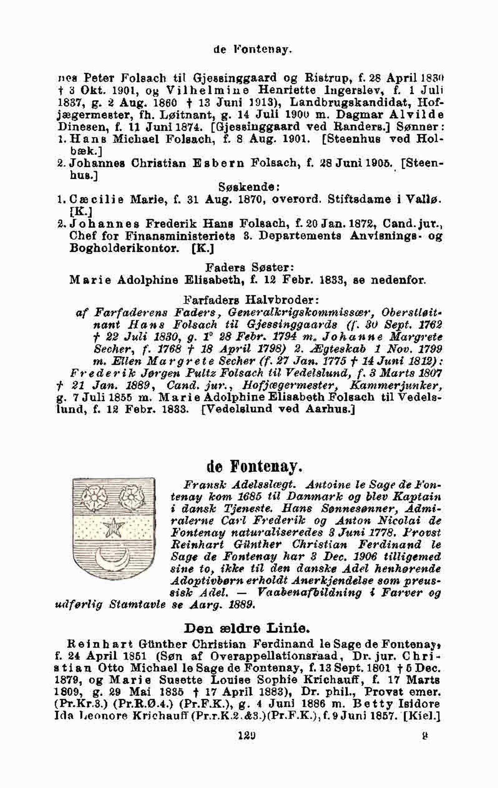 g. 7 Juli 1855 m. Marie Adolphine Elisabeth Folsach til Vedels-