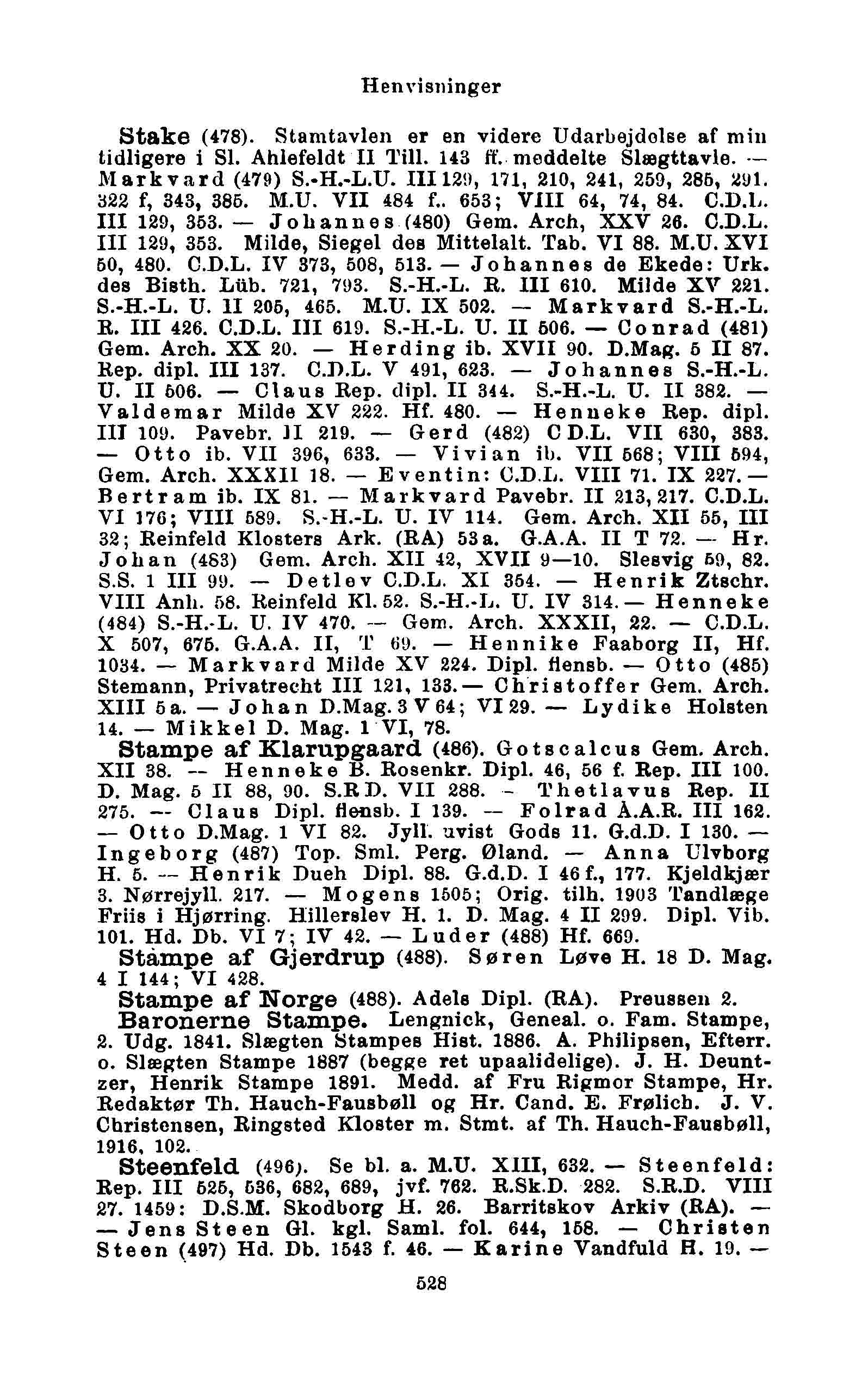 Stake (478). Stamtavlen er en videre Udarbejdolse af min