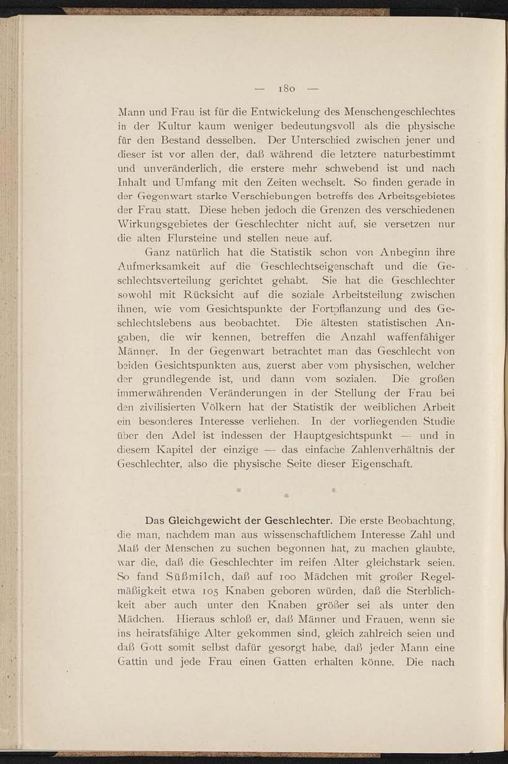 Das Gleichgewicht der Geschlechter. Die erste Beobachtung,