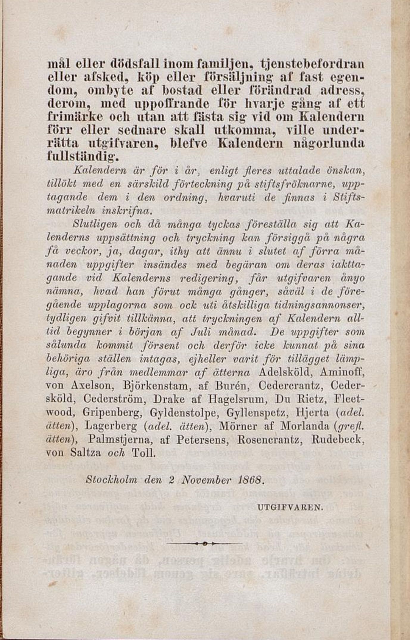 iakttagande vid Kalenderns redigering, får utgifvaren ånyo
