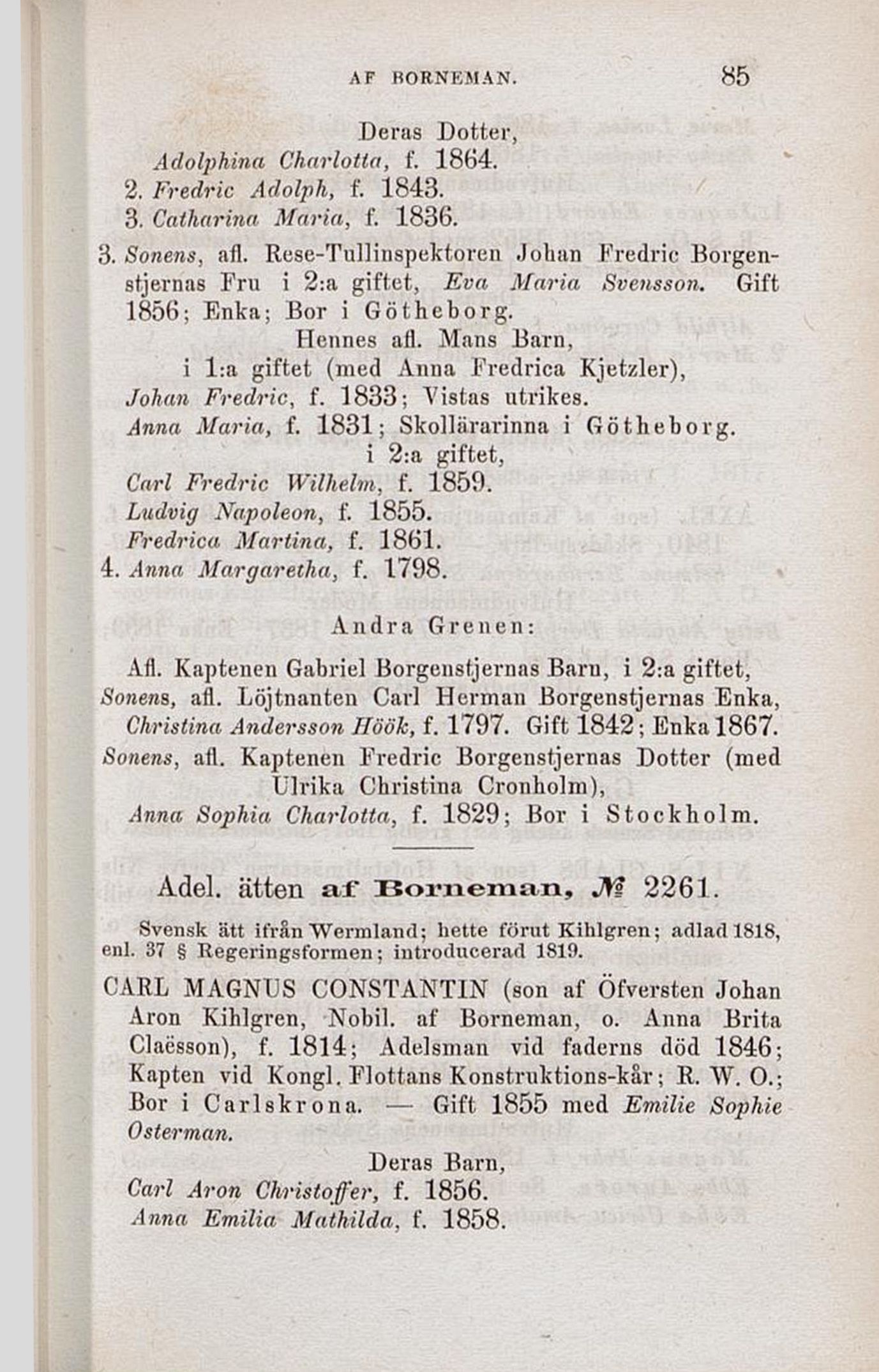 Aron Kihlgren, Nobil. af Borneman, o. Anna Brita