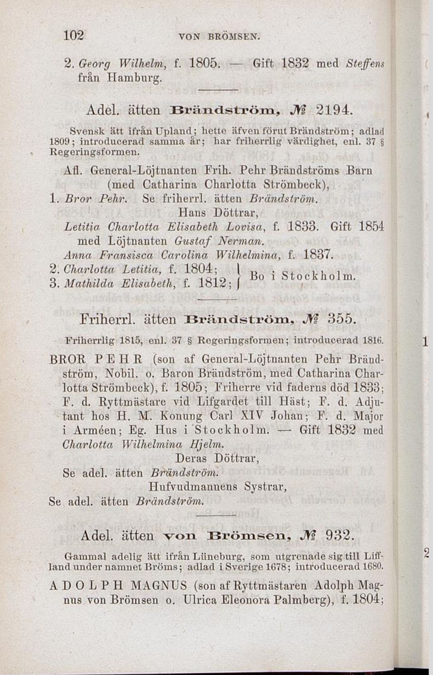 Svensk ätt ifrån Upland; hette äfven förut Brändström; adlad