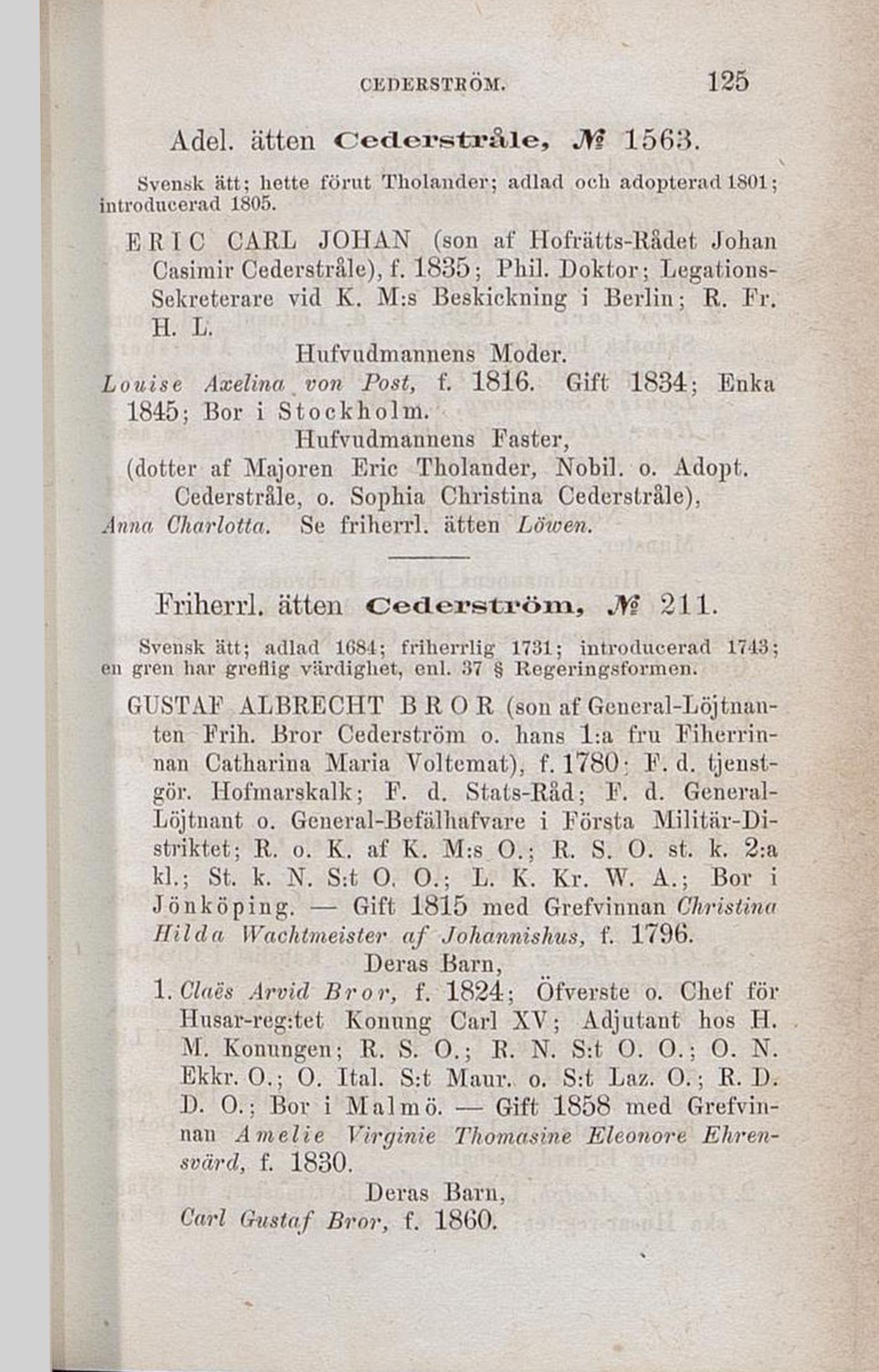 Casimir Cederstråle), f. 1835; Phil. Doktor;