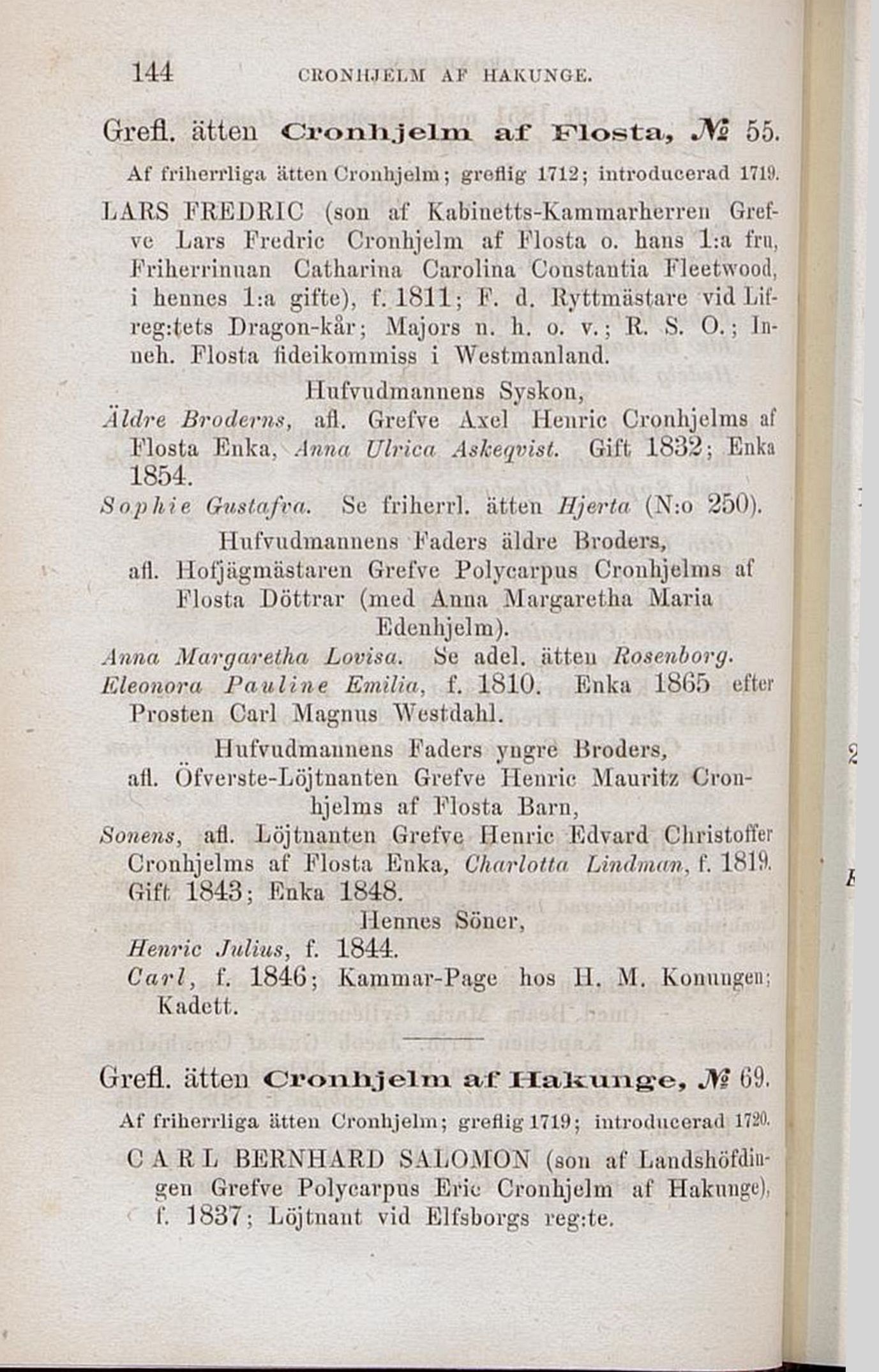 Grefl. ätten Cronlijelm af Flosta, JVs 55.