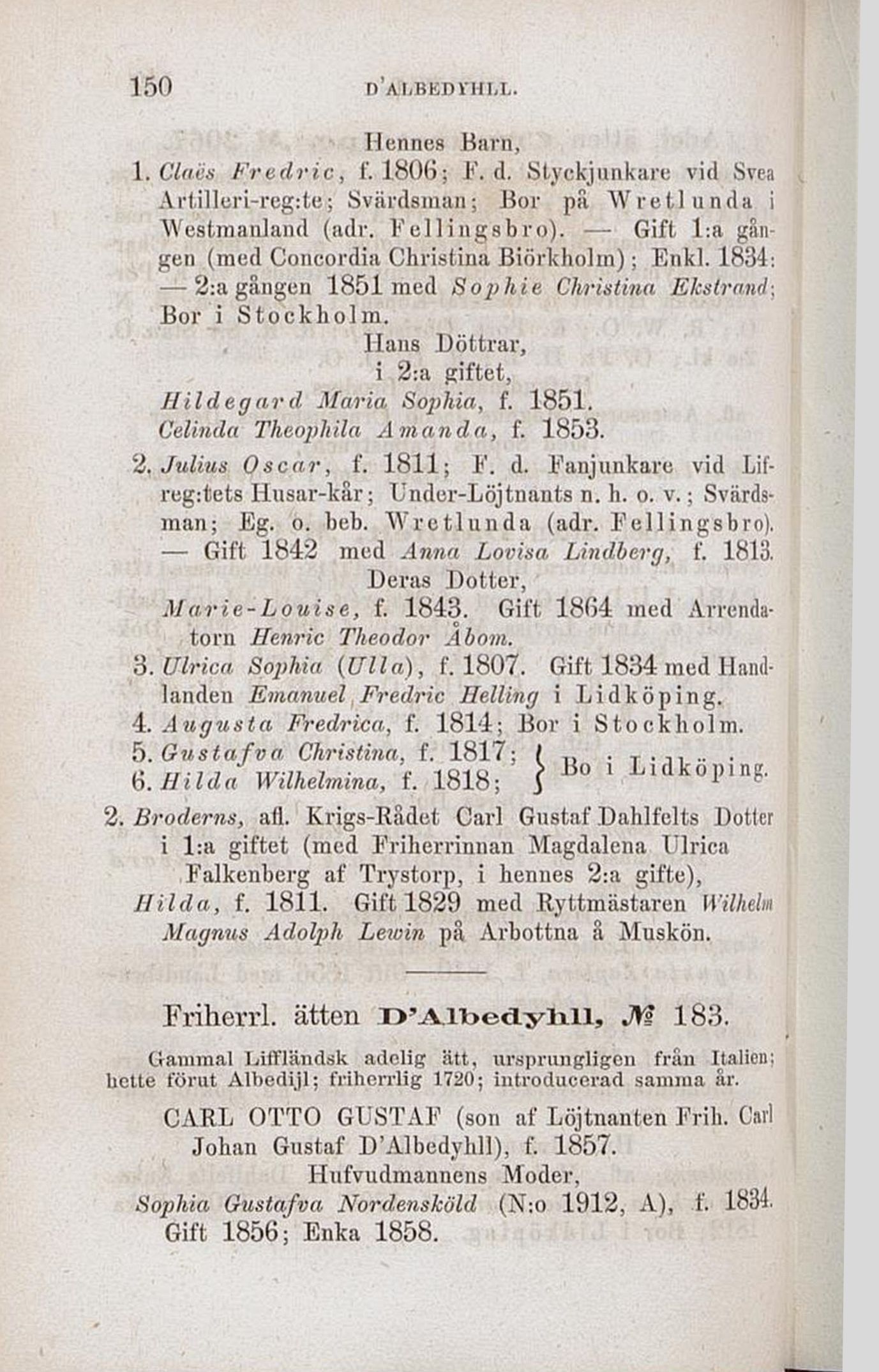 Friherrl. ätten r>’A.ii>eayiiii, M 183.