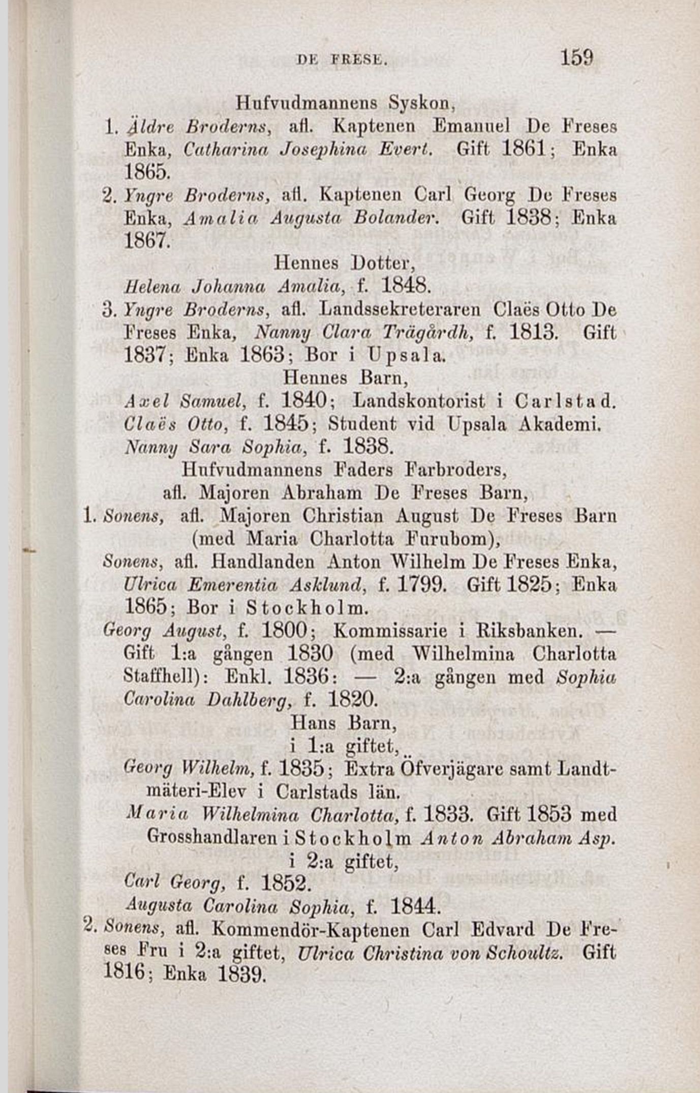 1. Äldre Broderns, all. Kaptenen Emanuel De Freses