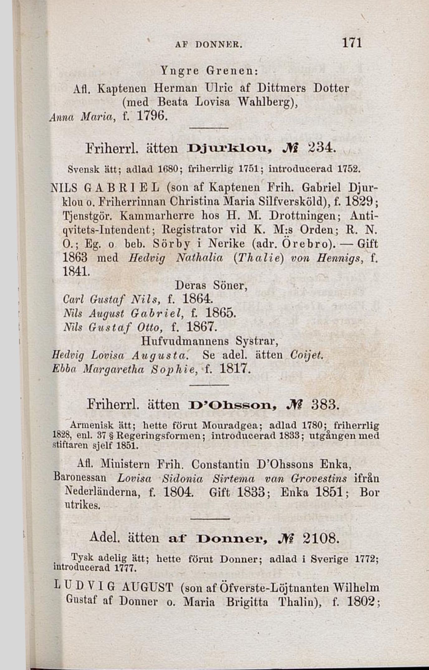Friherrl. ätten l>’Olissoii, JY§ 383.