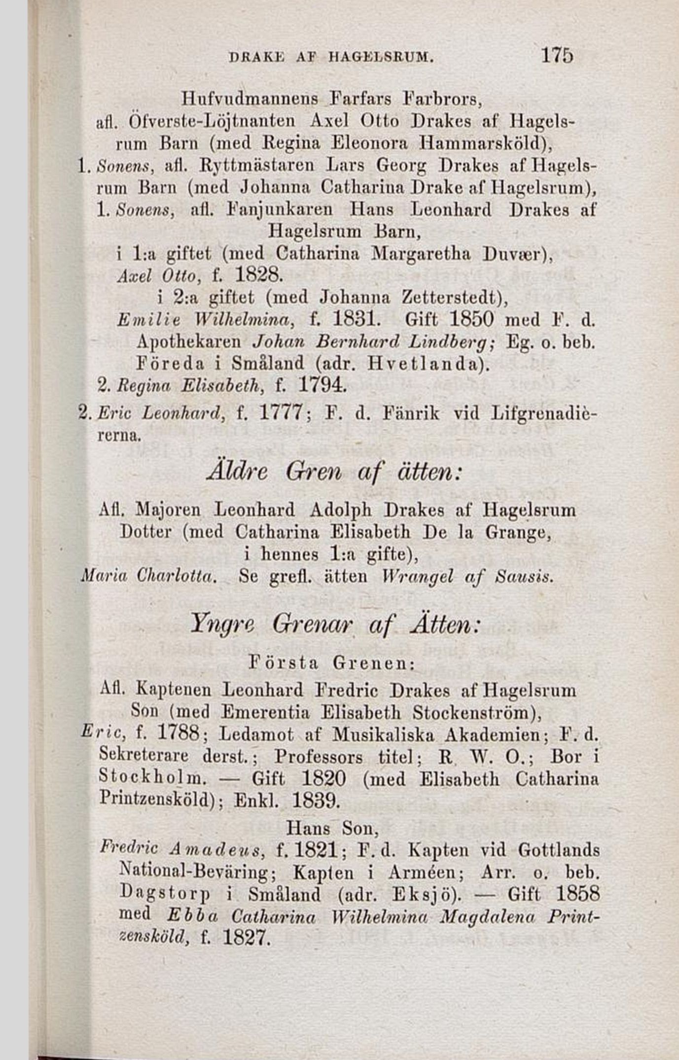 1.	Sonens, afl. Fanjunkaren Hans Leonhard Drakes af
