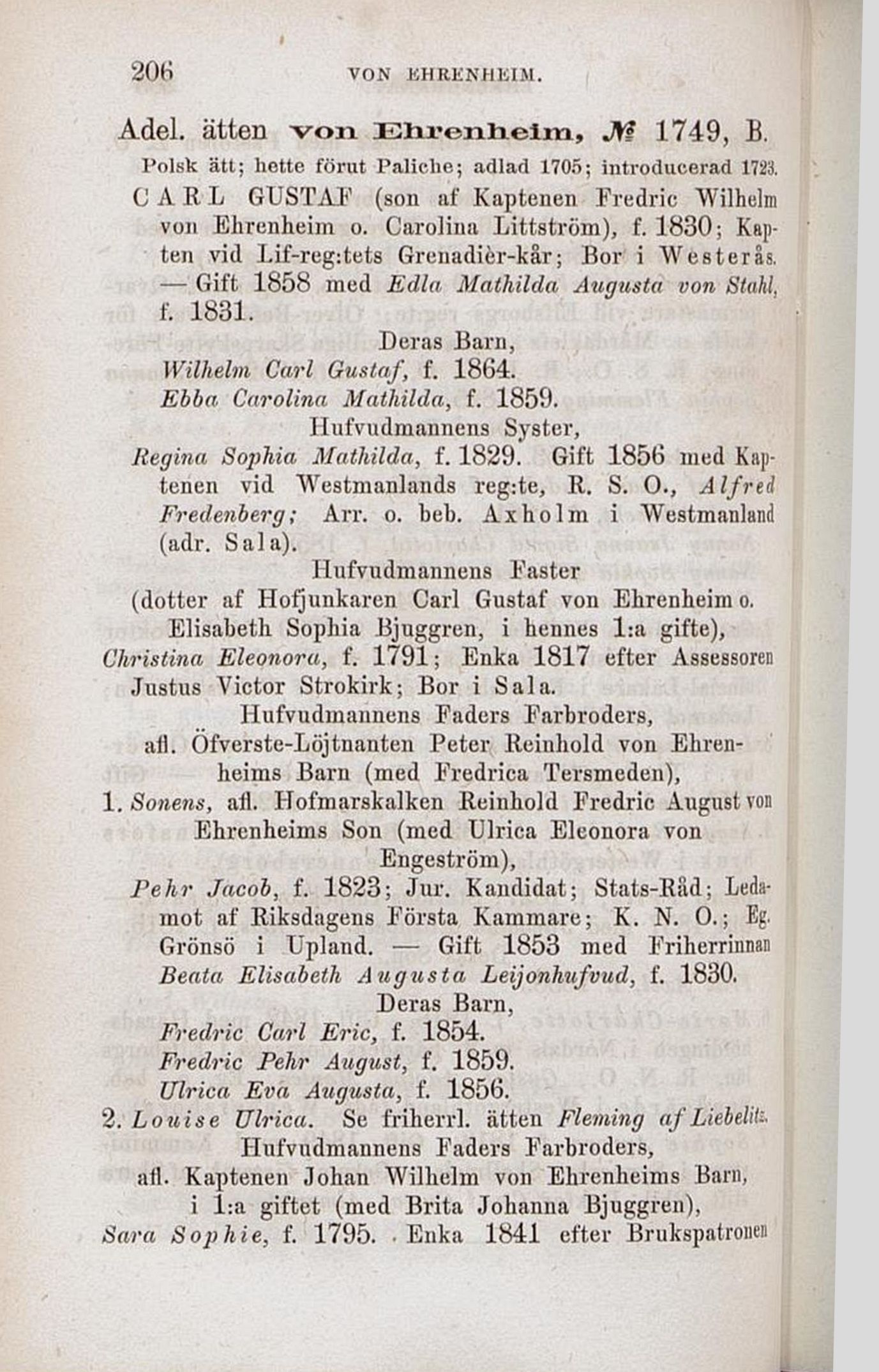 von Ehrenheim o. Carolina Littström), f. 1830;