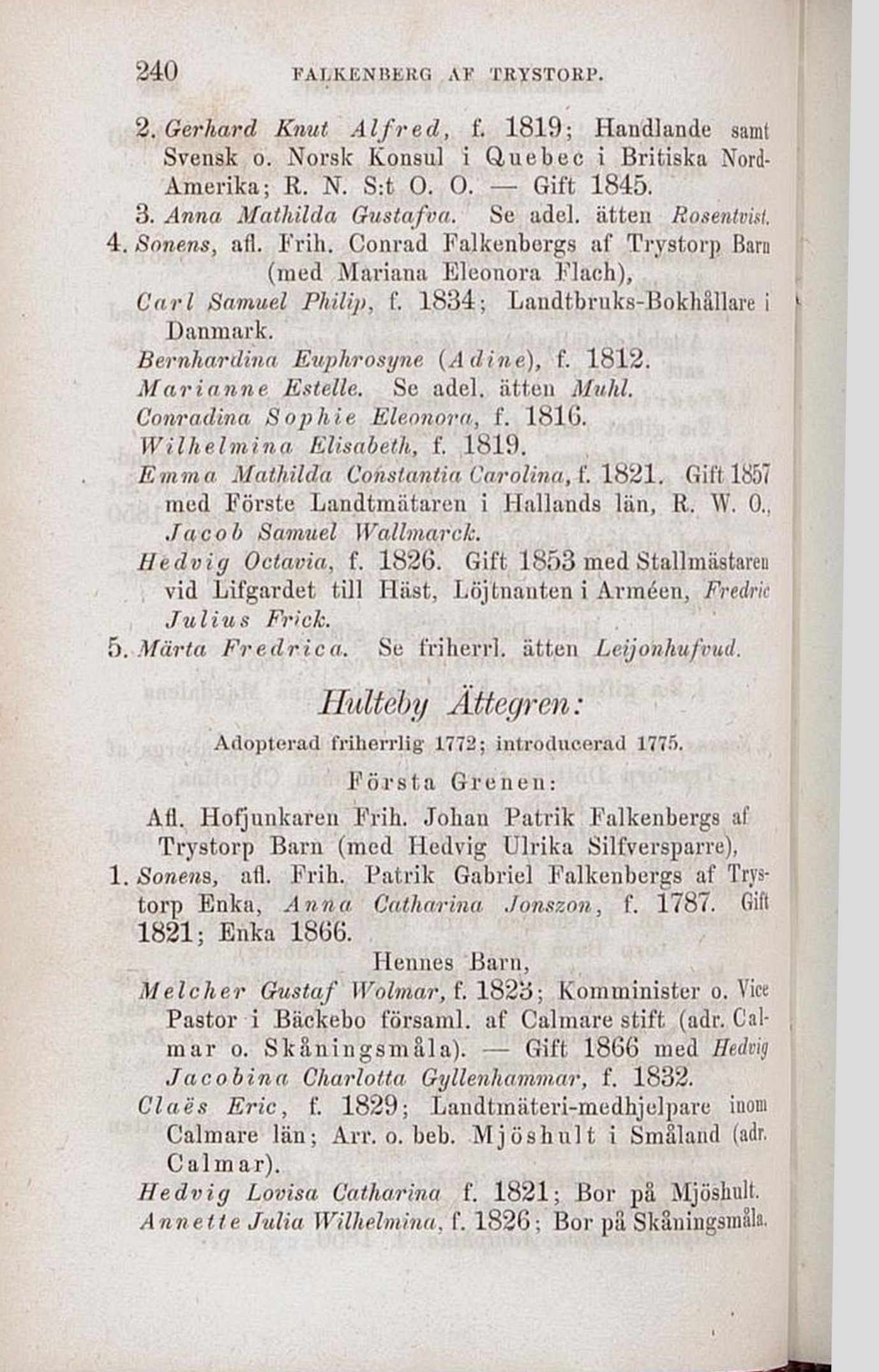 1. Sonens, ad. Frih. Patrik Gabriel Falkenbergs af