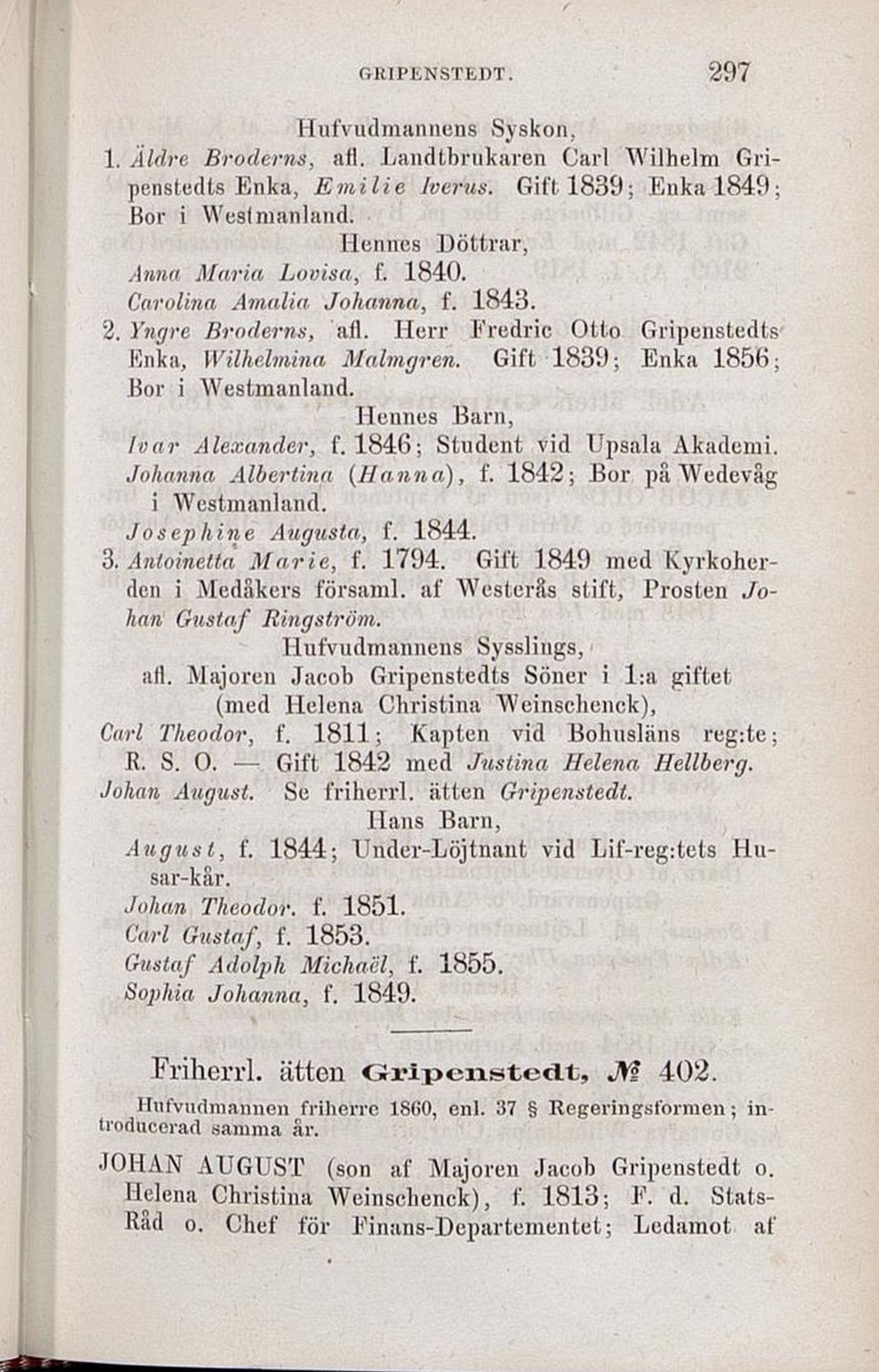 JOHAN AUGUST (son af Majoren Jacob Gripenstedt o.