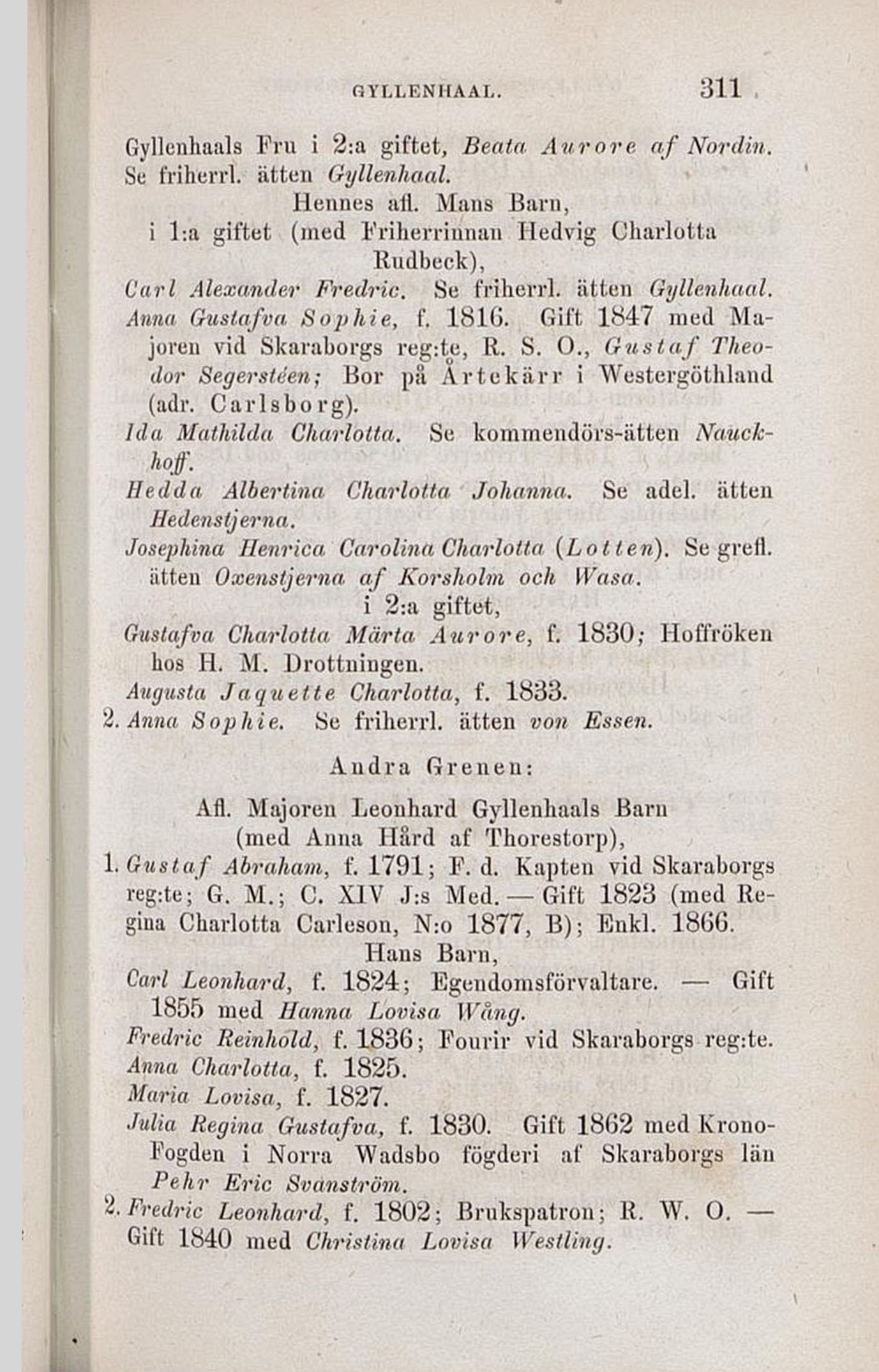 1.Gustaf Abraham, t. 1791; F. d. Kapten vid Skaraborgs