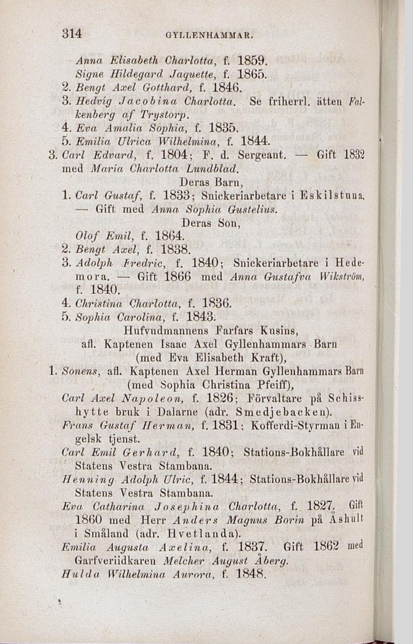3. Carl Edvard, f. 1804; F. d. Sergeant. — Gift 1832
