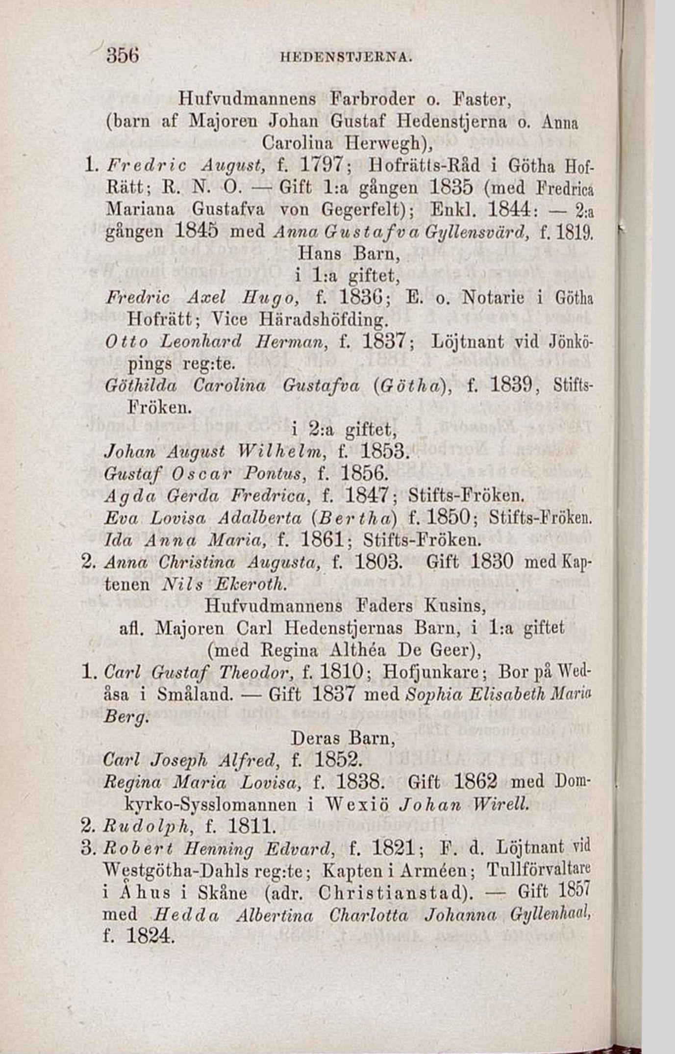 1. Fredric August, f. 1797; 11 ofrätls-Rad i Götha