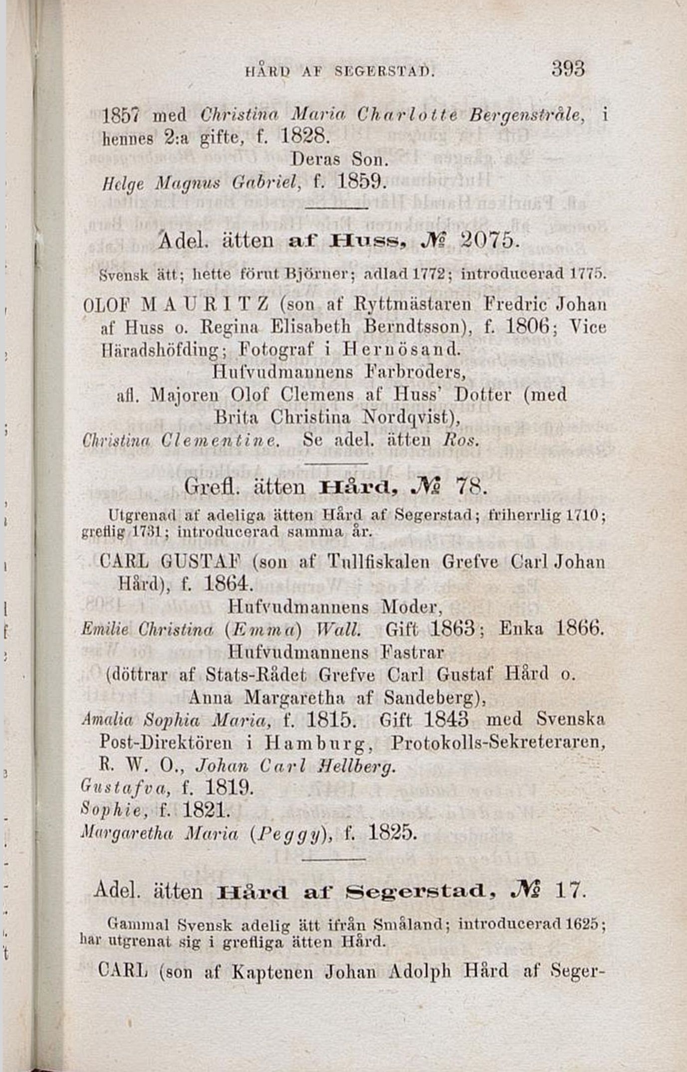 CARL (son af Kaptenen Johan Adolph Hård af Seger-