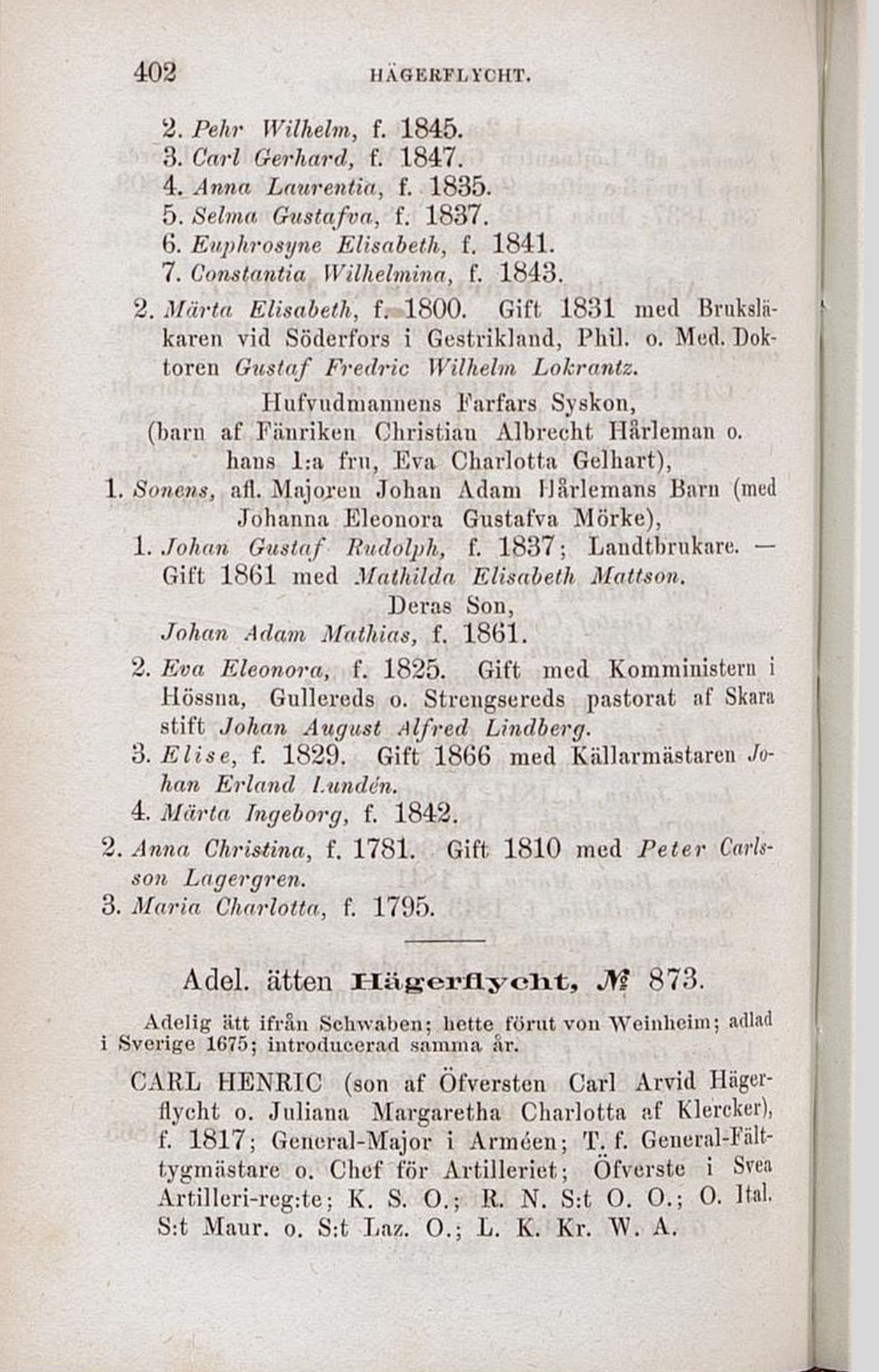 1. Sonens, afl. Majoren Johan Adam llårlemans Barn (med