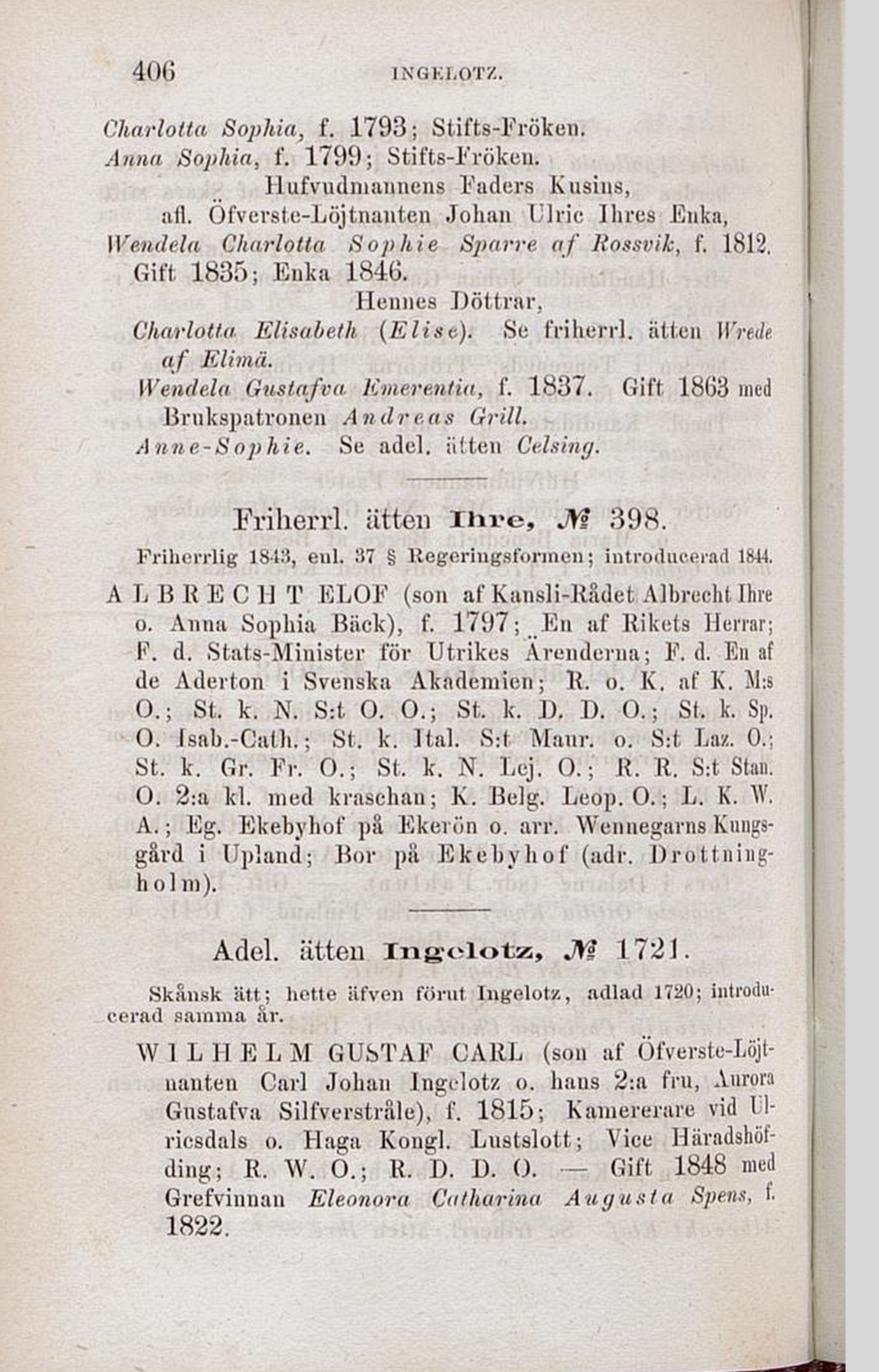 Skånsk ätt; hette äfven förut lngelot/., adlad 1720;