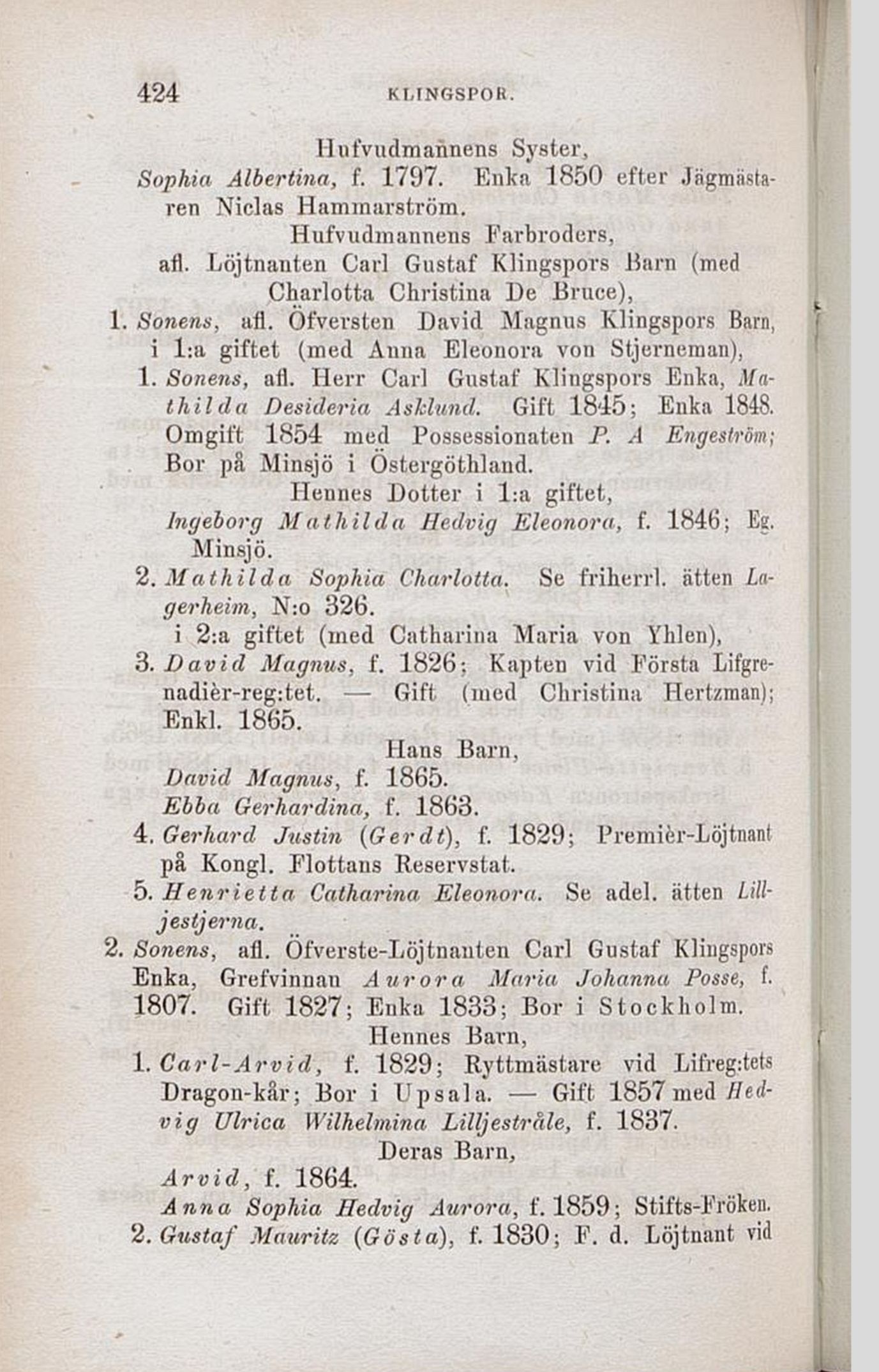 1. Sonens, afl. Öfversten David Magnus Klingspors Barn,