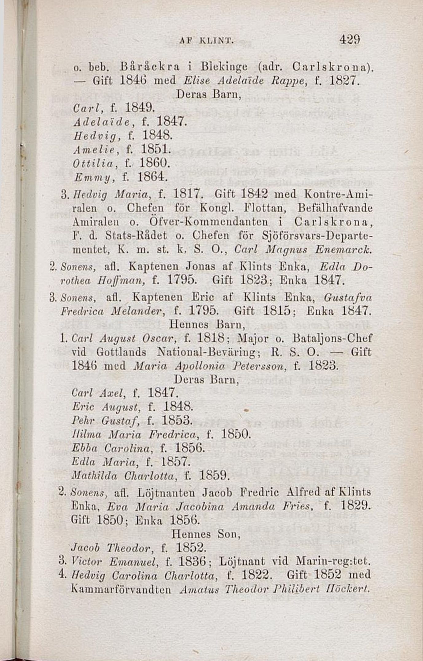 2. Sonens, all. Löjtnanten Jacob Fredric Alfred af Klints