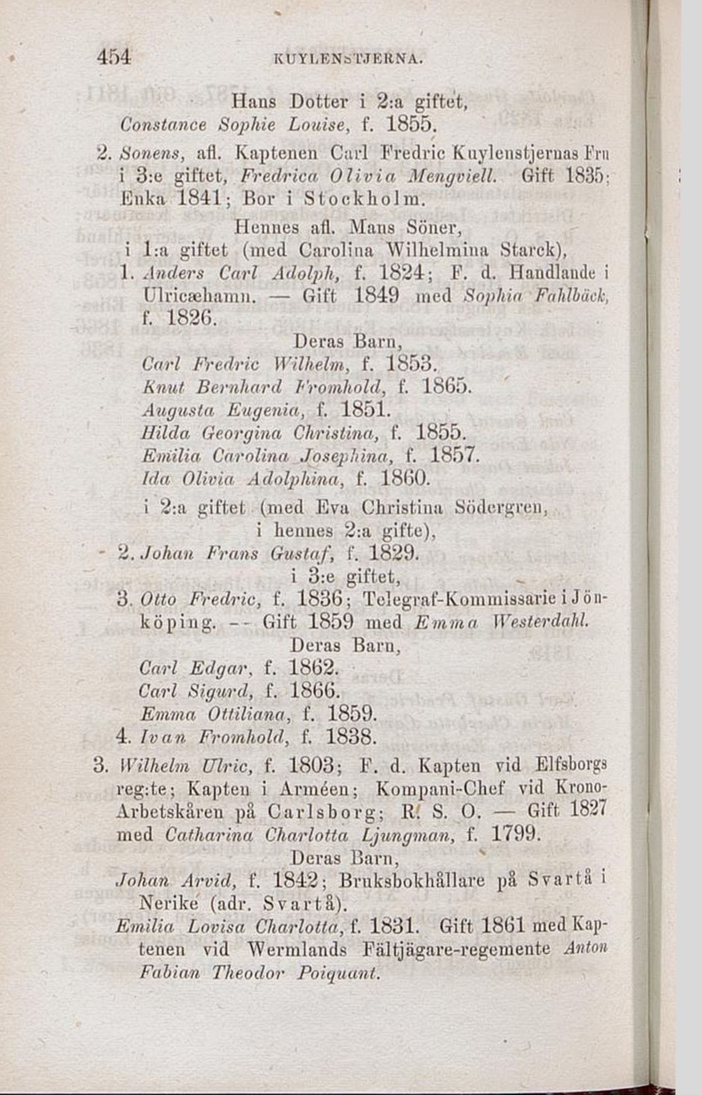 3. Wilhelm Ulric, f. 1803; F. d. Kapten vid Elfsborgs