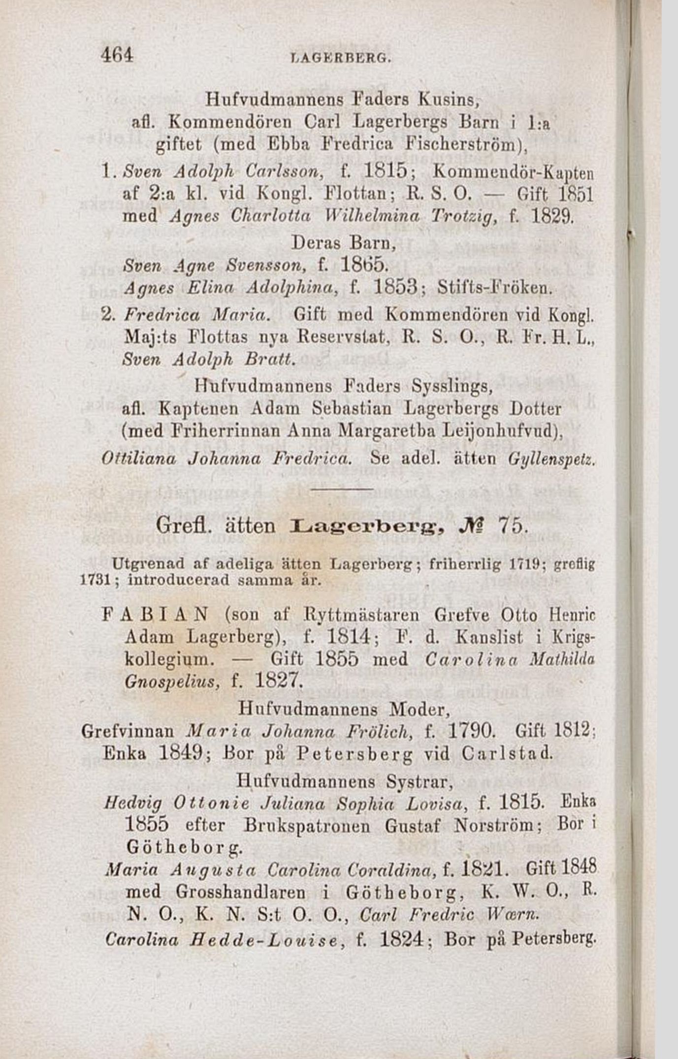 Grefl. ätten Lagerberg, M 75.