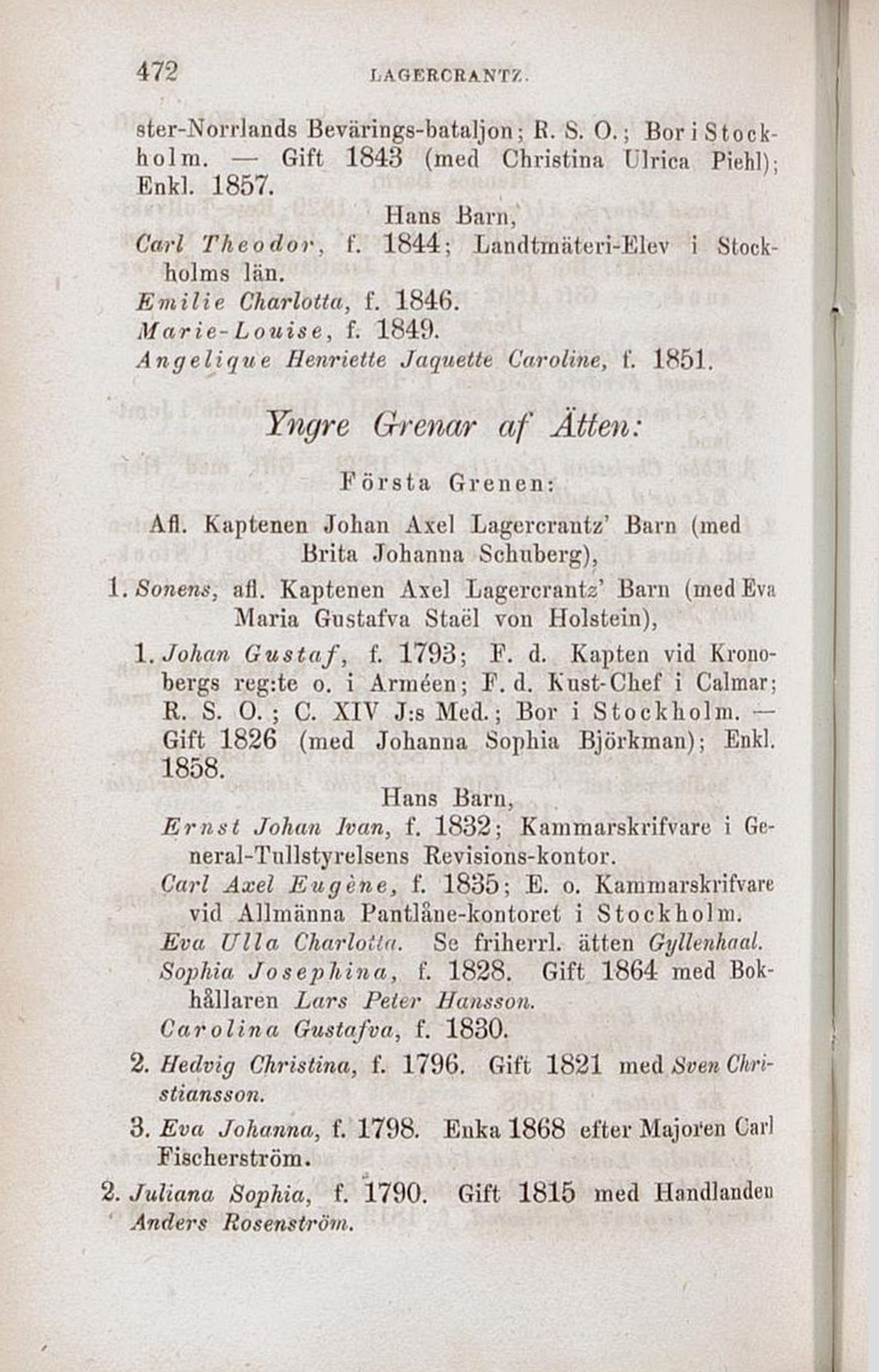 Afl. Kaptenen Johan Axel Lagercrantz’ Barn (med
