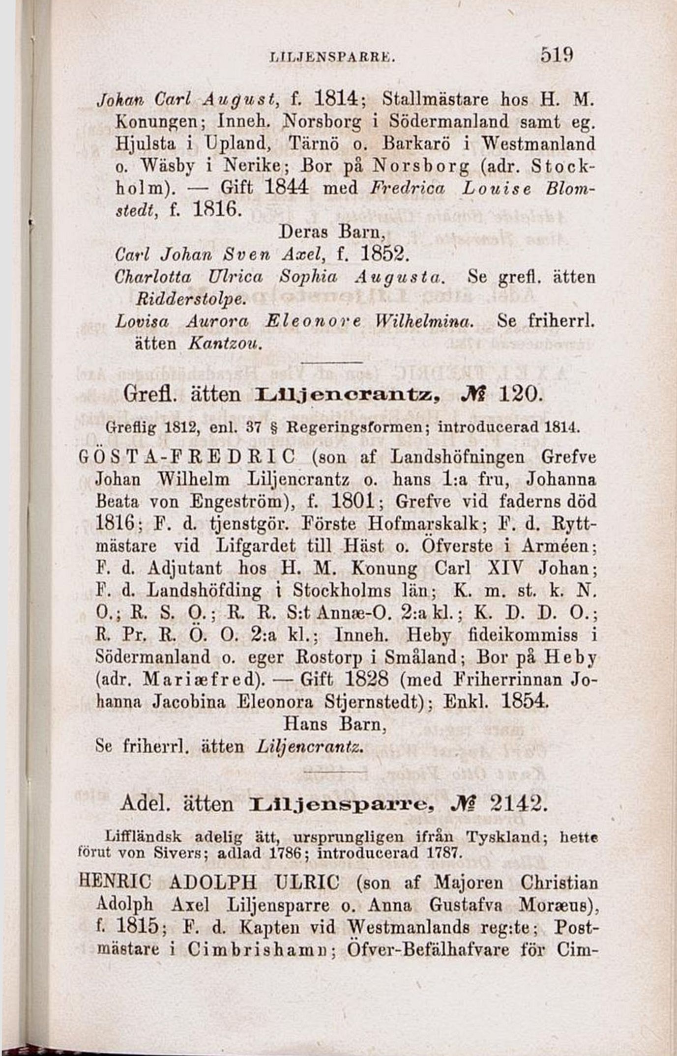 Adolph Axel Liljensparre o. Anna Gustafva Moræns),