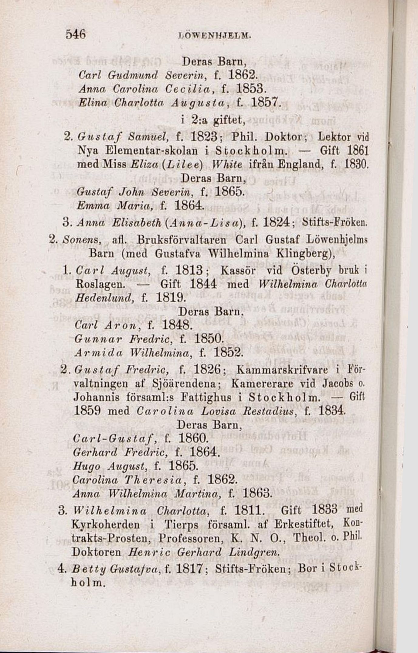 ’2. Gustaf Samuel, f. 1823; Phil. Doktor; Lektor vid