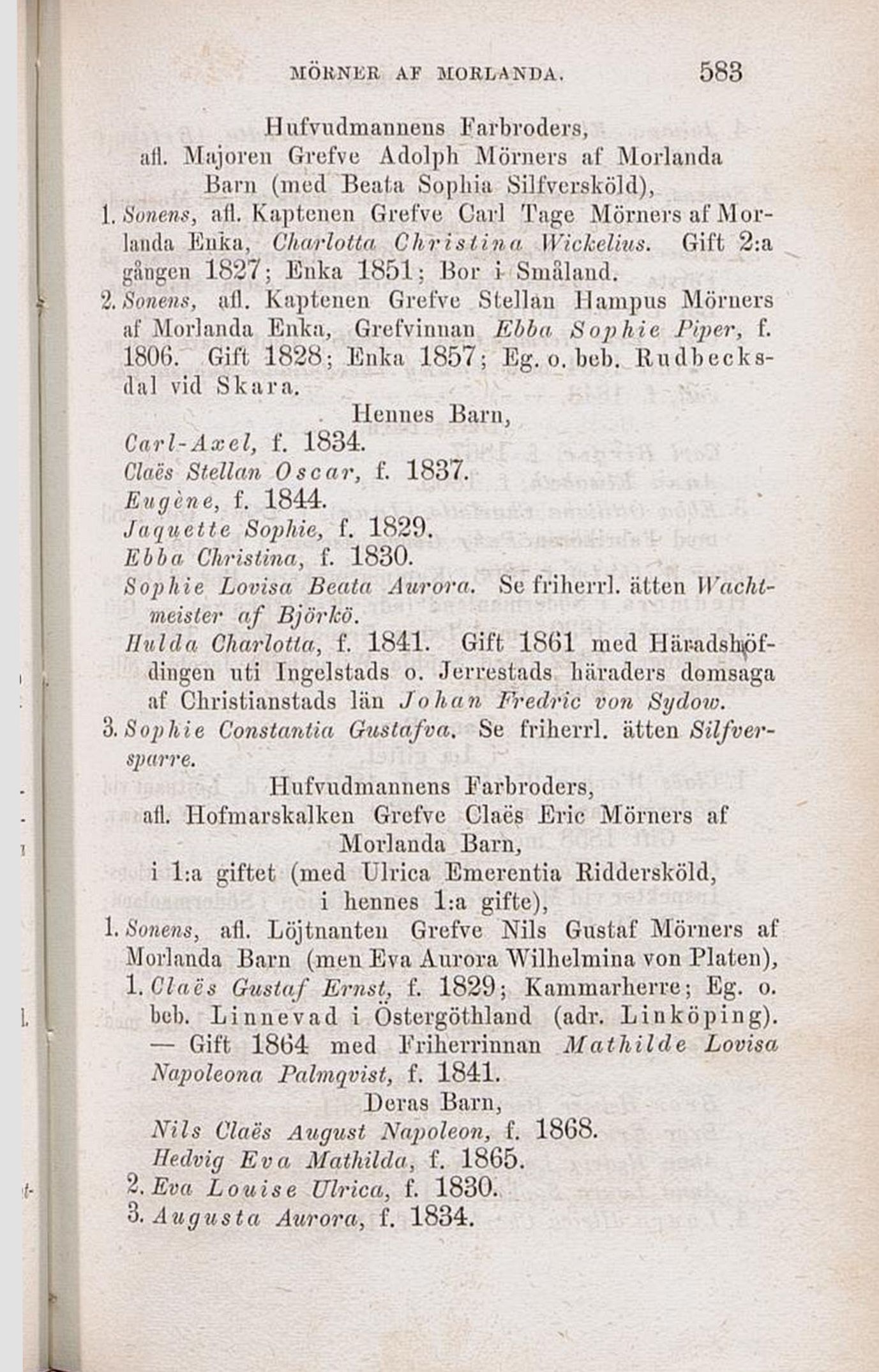 2.	Sonens, all. Kaptenen Grefve Stellan Hampus Mörners