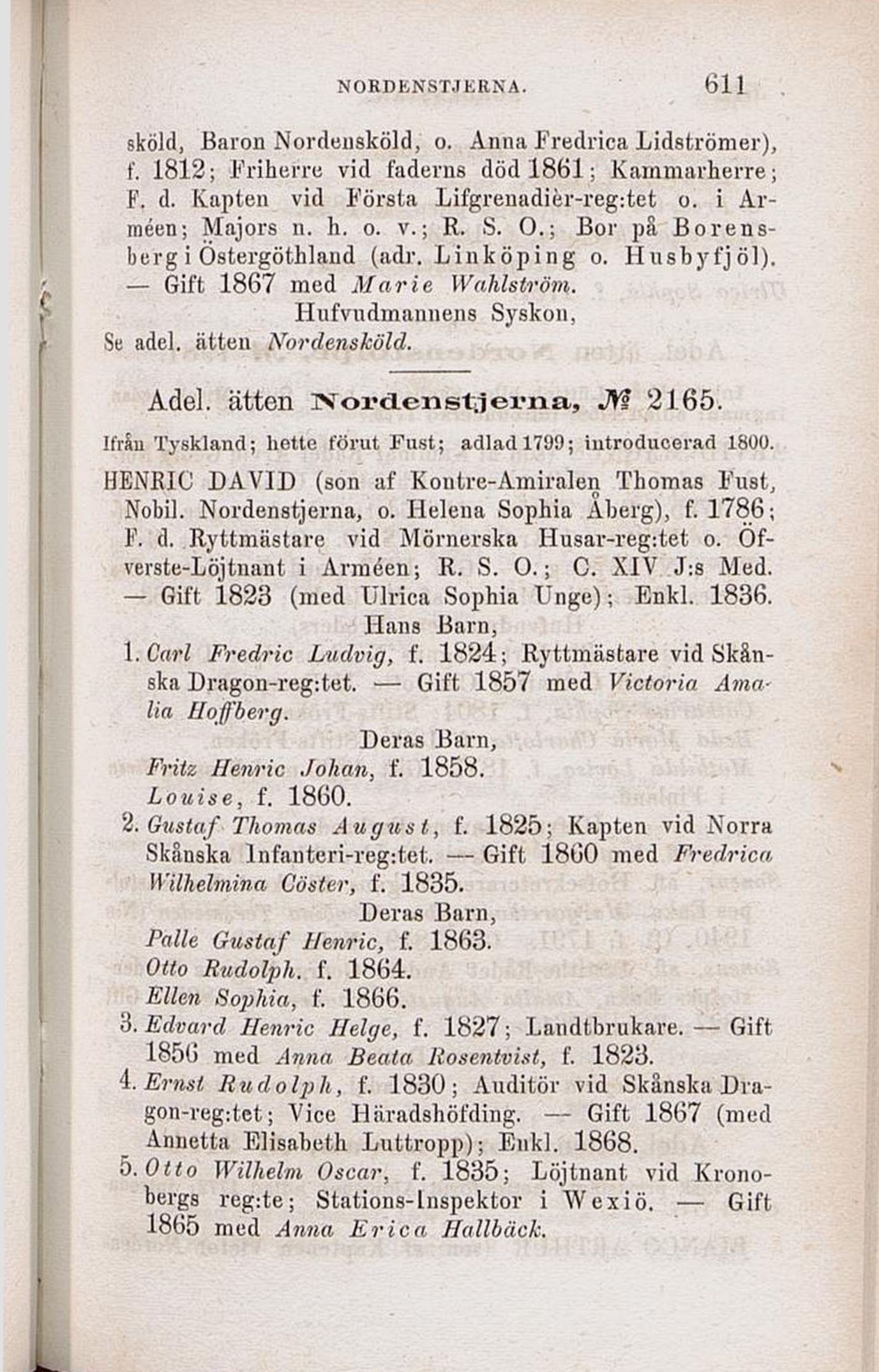 Nobil. Nordenstjerna, o. Helena Sophia Åberg), f. 1786;