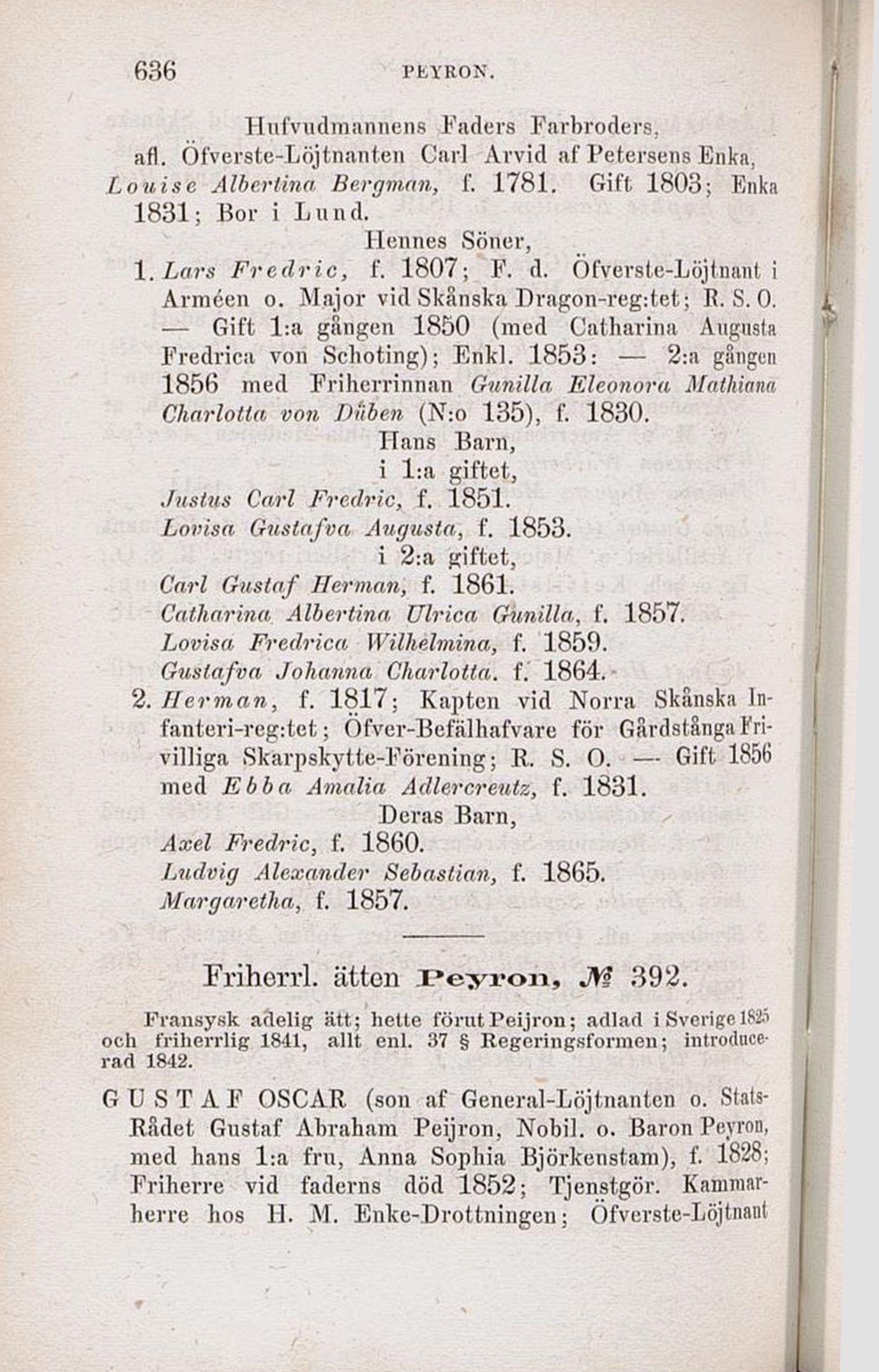 Fransysk adelig ätt.; liette förutPeijron; adlad i Sverige 1825