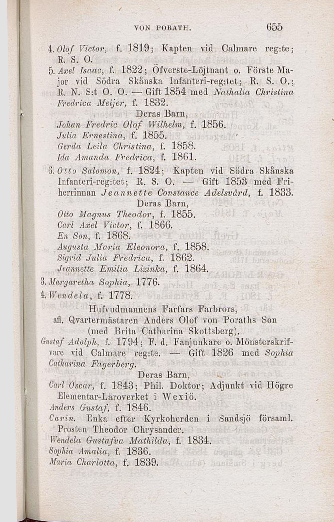 4. Olof Victor, f. 1819; Kapten vid Calmare reg:te;