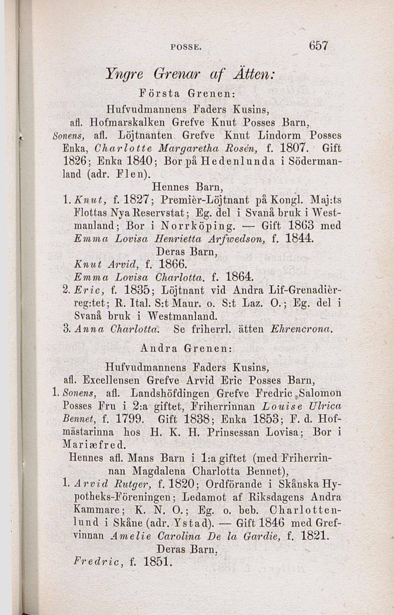 Sonens, afl. Löjtnanten Grefve Knut Lindorm Posscs