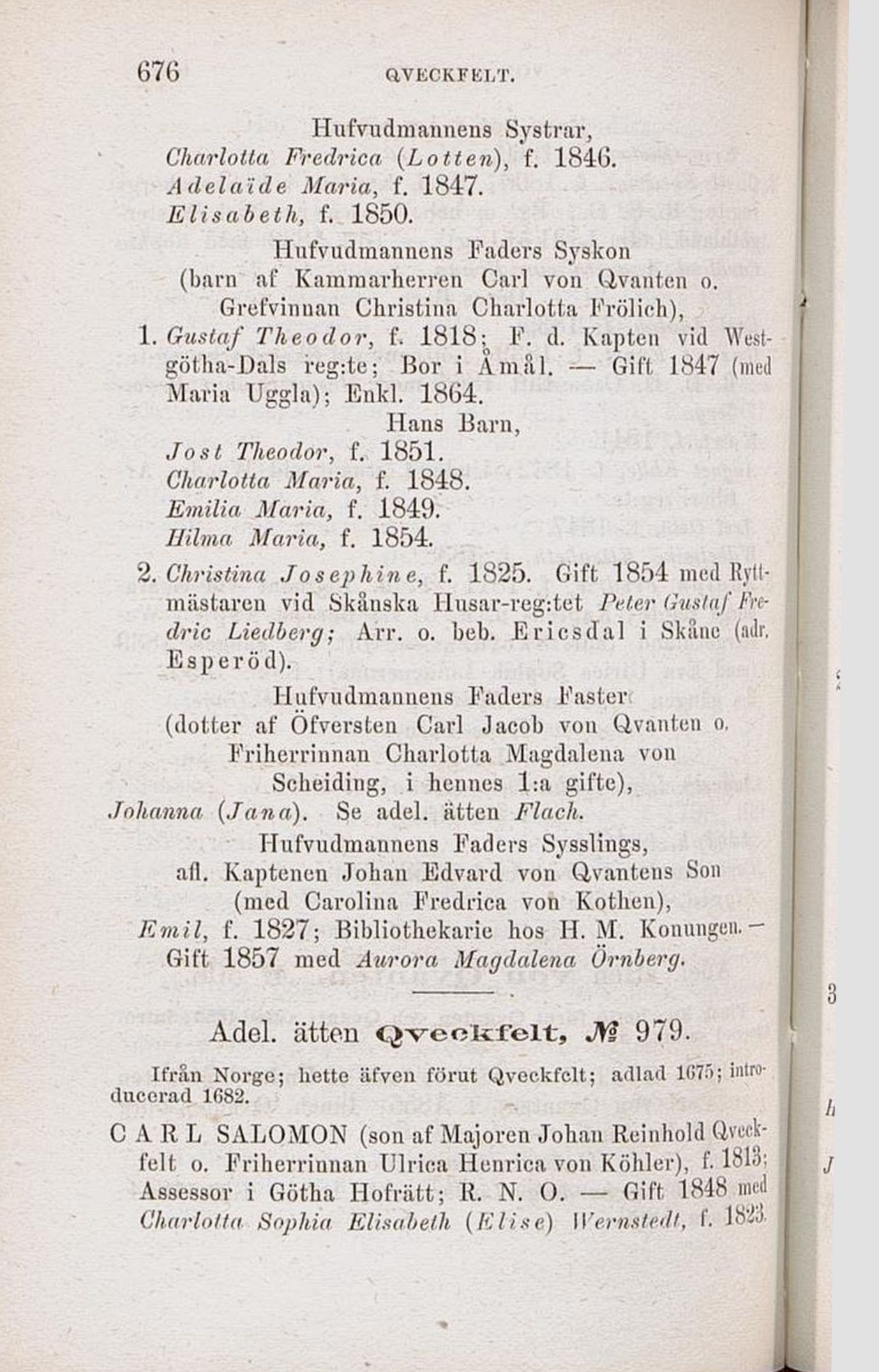 Adel. ätten Qvëofcfelt, M 979.
