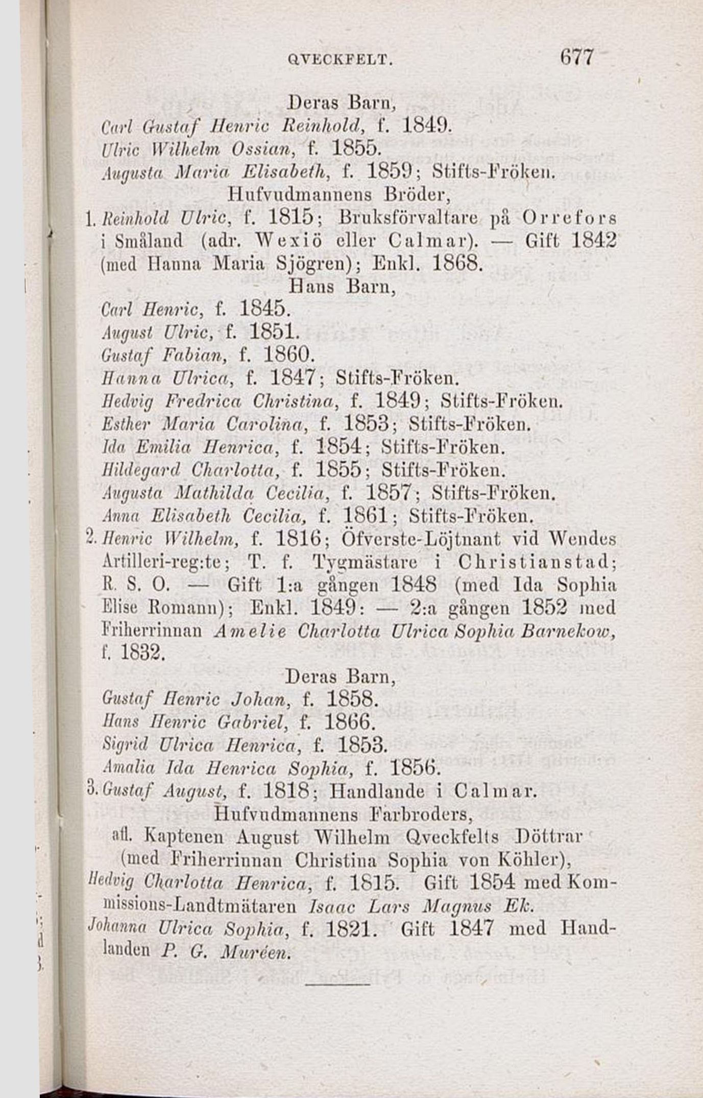 1. Reinhold Ulric, f. 1815; Bruksförvaltare pä Orrefors