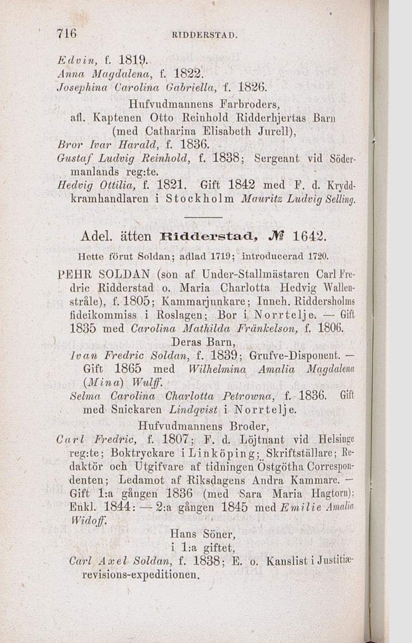 Adel. ätten Ridderstad., M 1642.