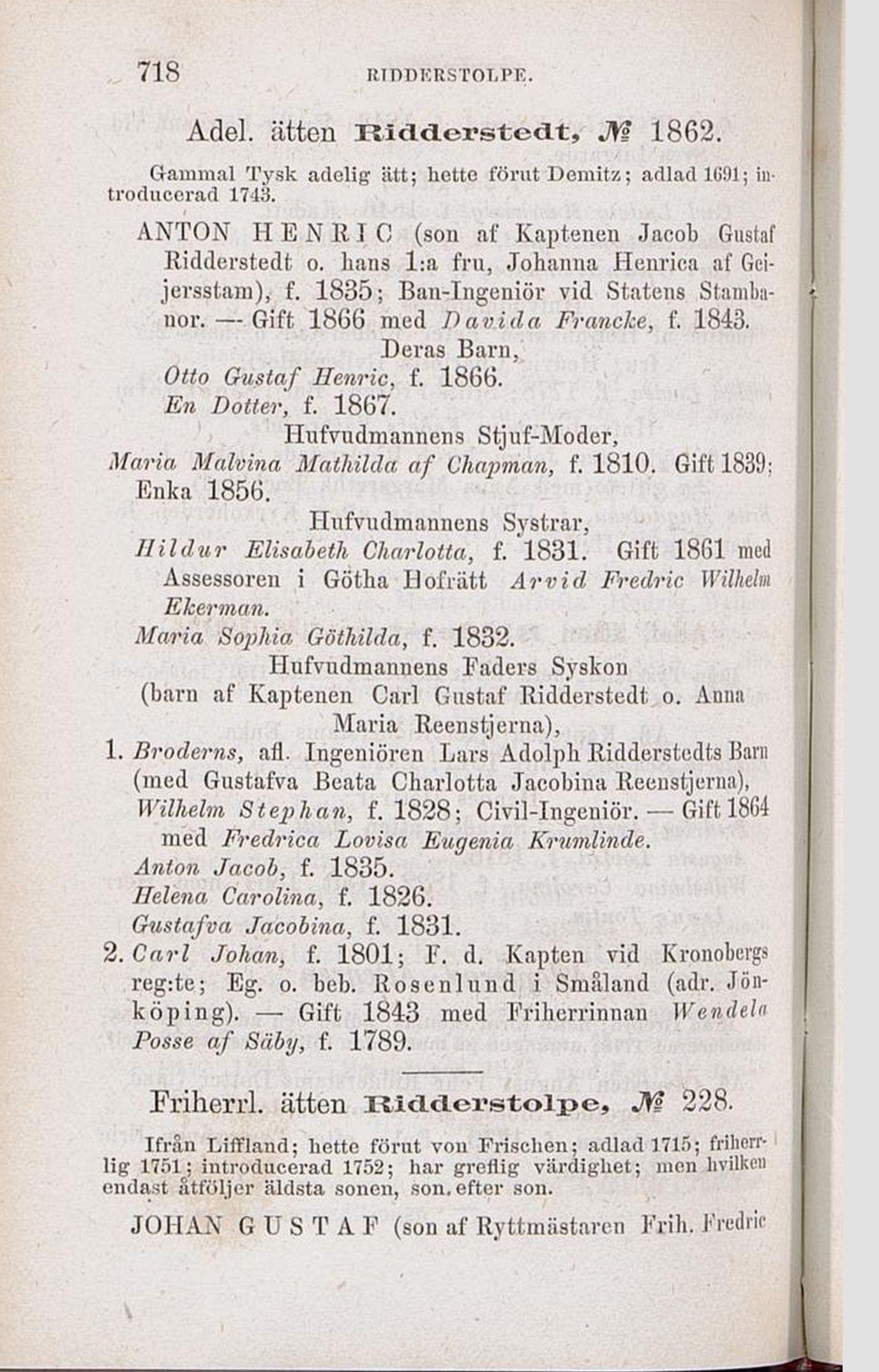 Adel. ätten Riddcrstcdt, JY? 1862.