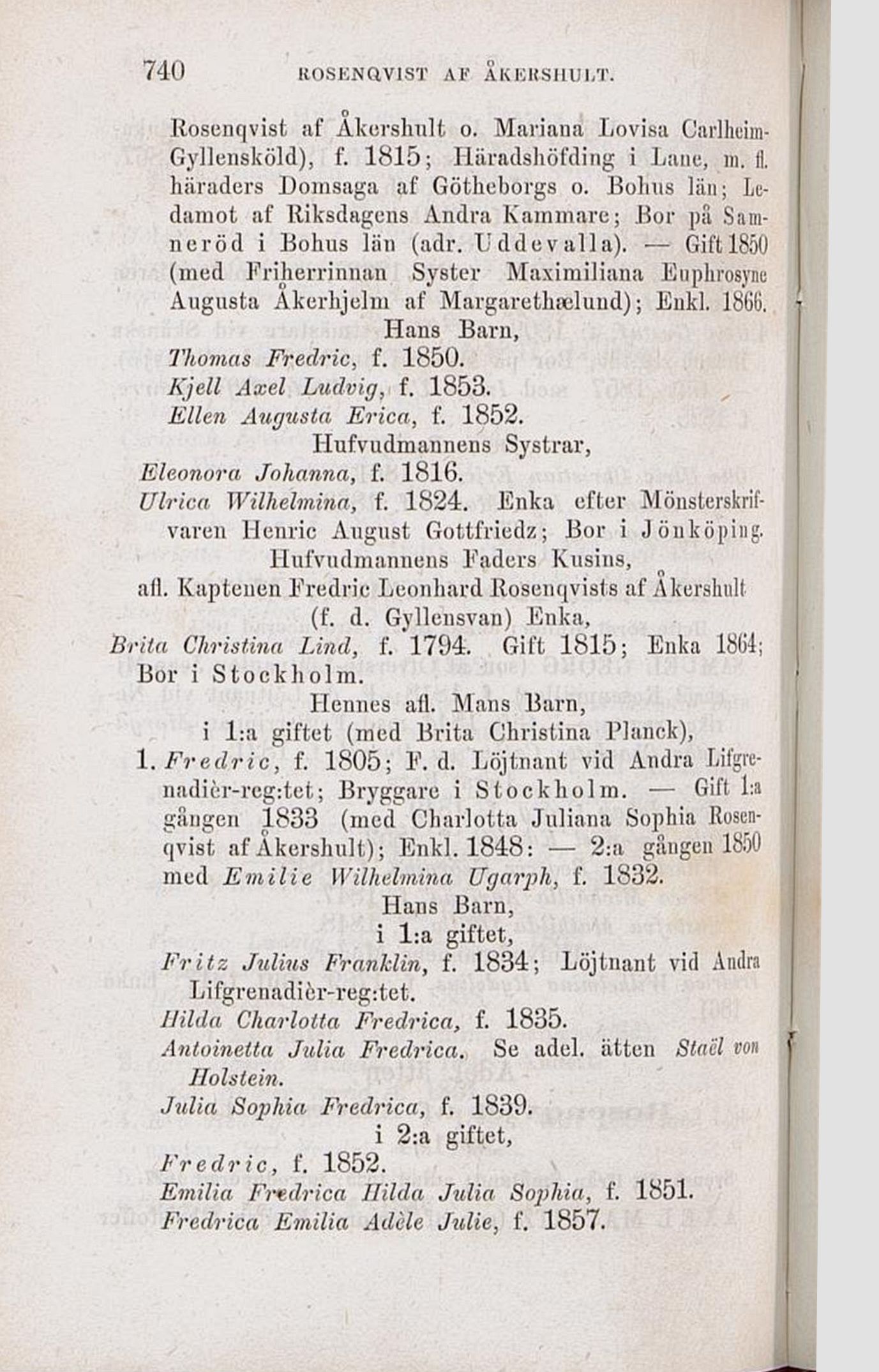 Rosenqvist af Äkershult); Enkl. 1848: — 2:a gången 1850