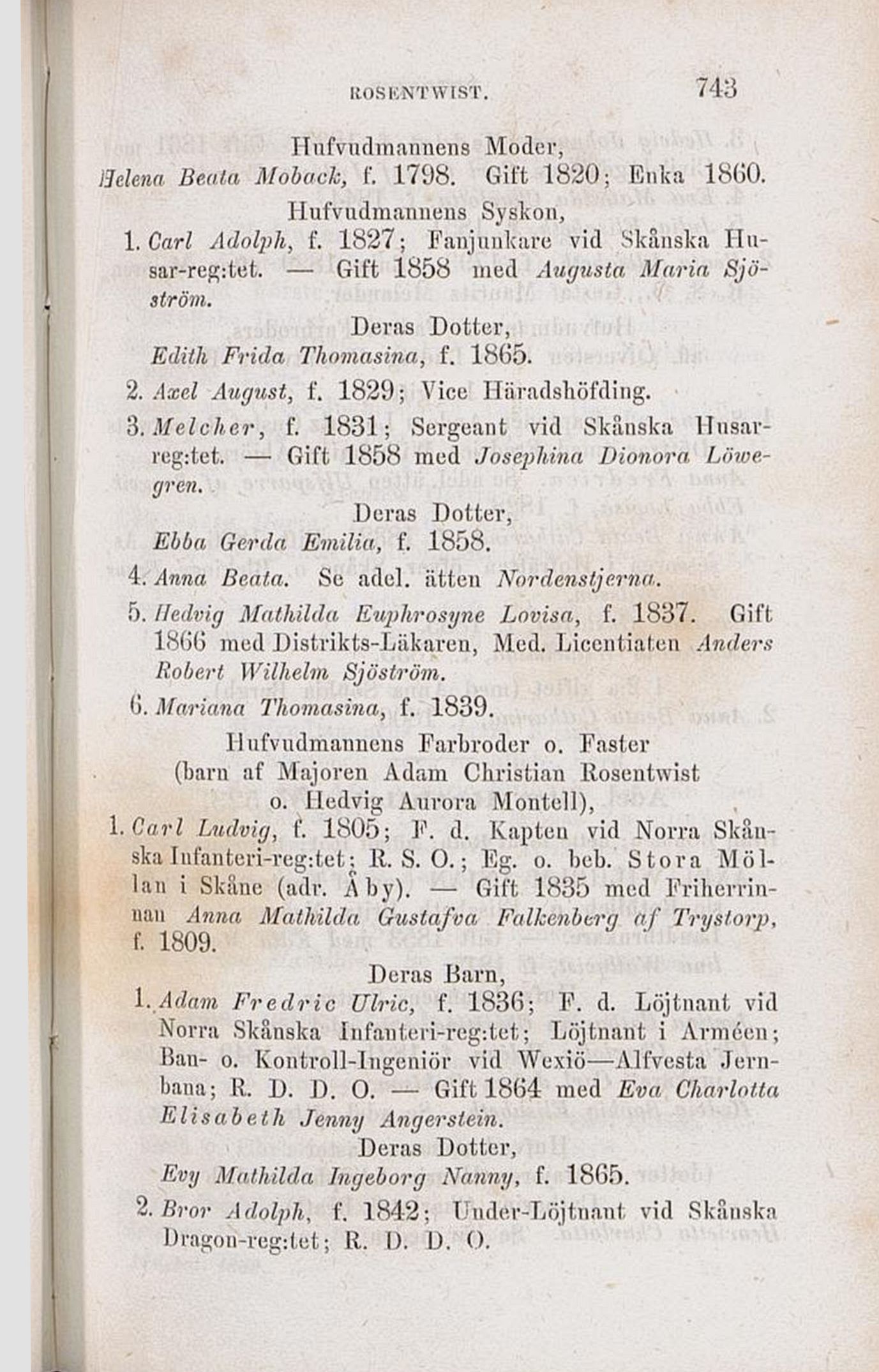 2. Bror Adolph, f. 1842; Under-Löjtnant vid Skånska