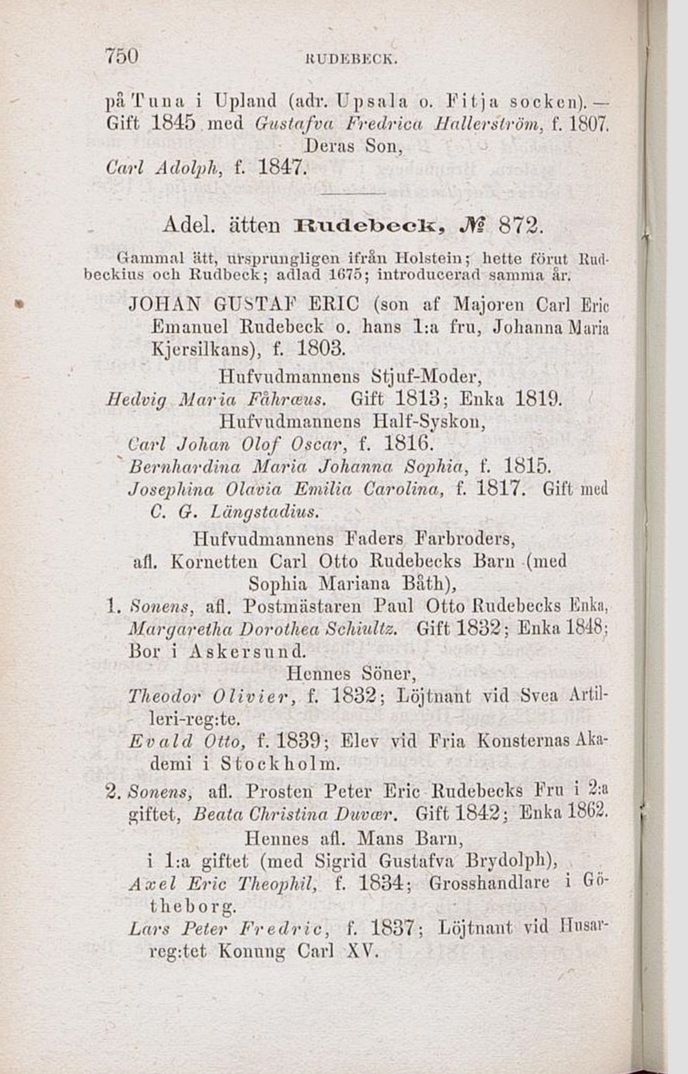 Adel. ätten Rudebeck, M 872.