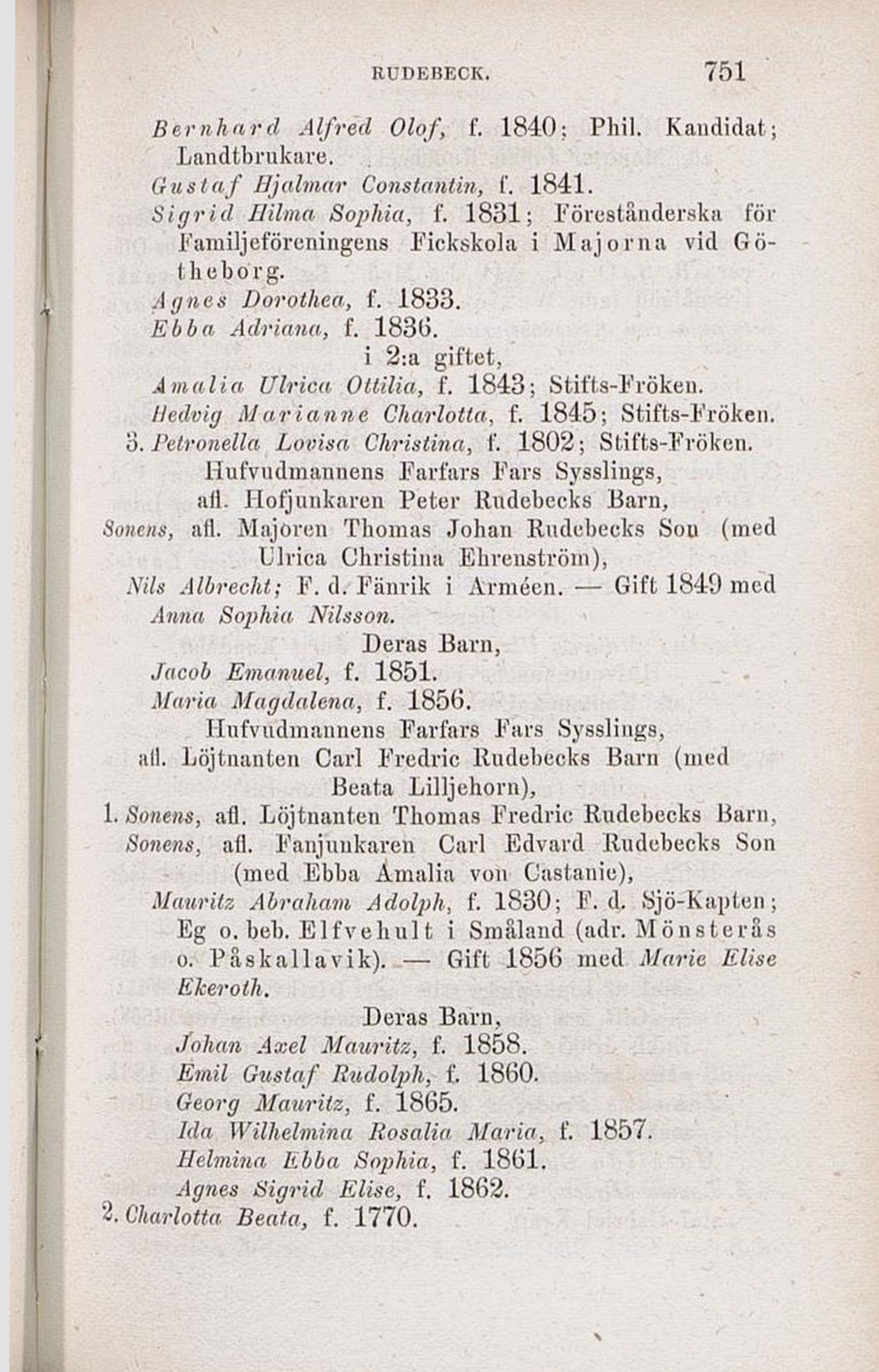 1. Sonens, afl. Löjtnanten Thomas Fredric Rudebecks Barn,