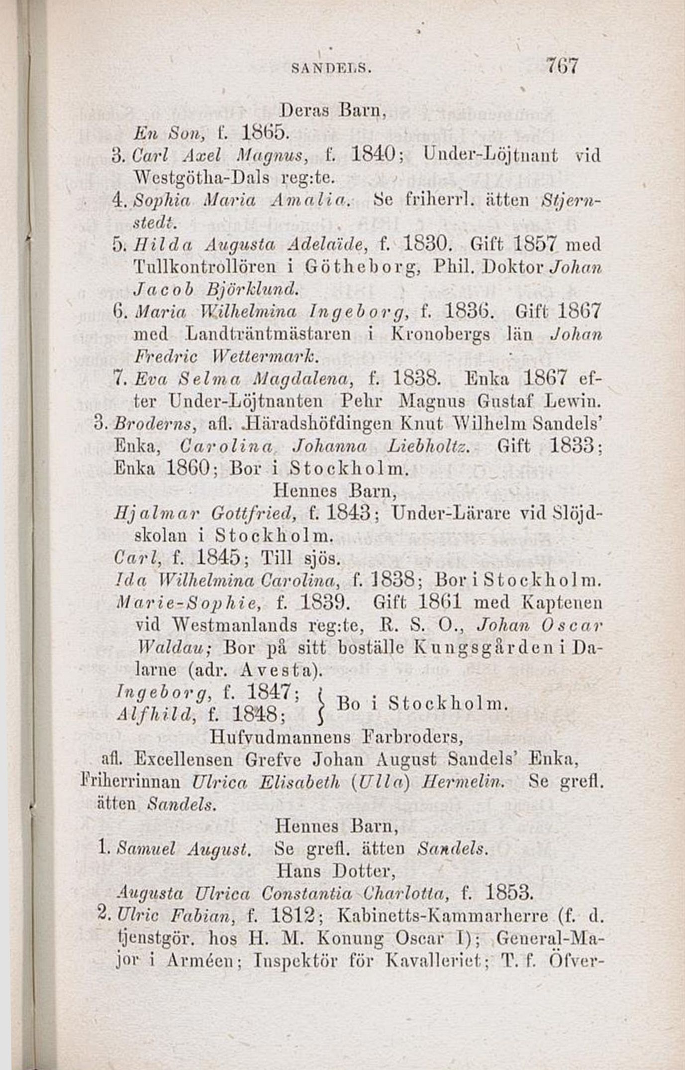 3. Broderns, afl. .Häradshöfdingen Knut Wilhelm Sandels’