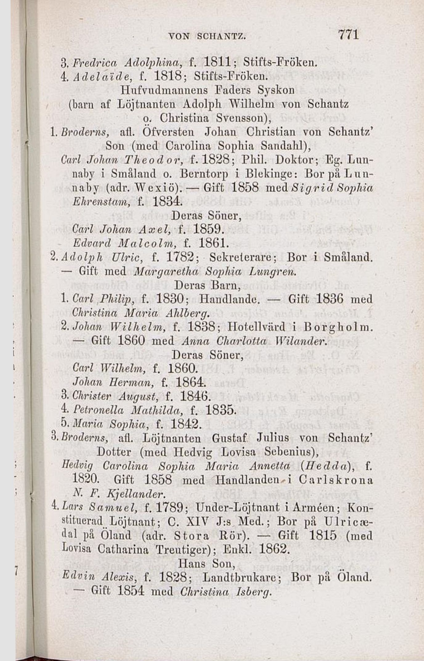 2. Adolph Ulric, f. 1782; Sekreterare; Bor i Småland.