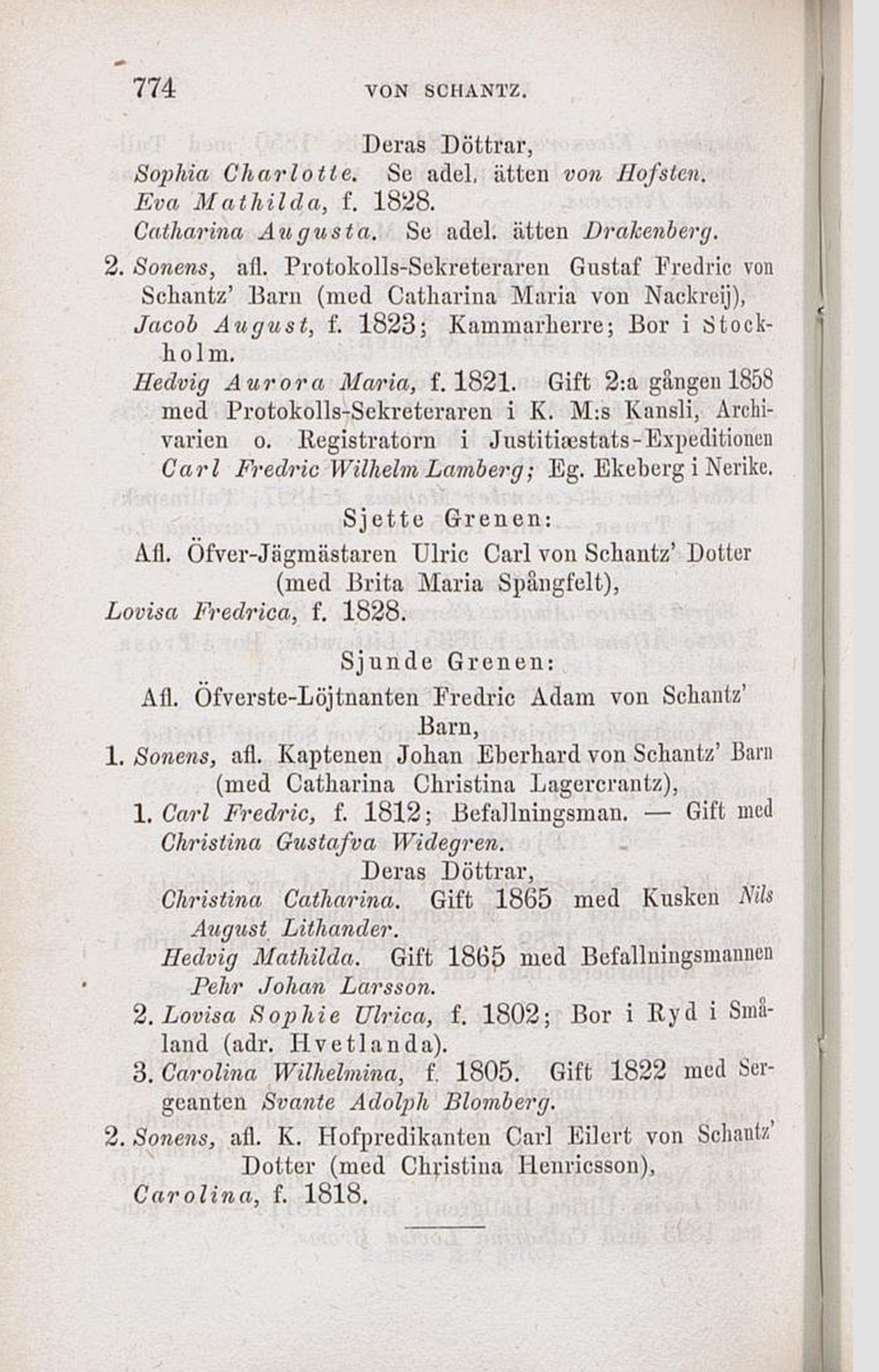 1.	Sonens, afl. Kaptenen Johan Eberhard von Schantz’ Barn