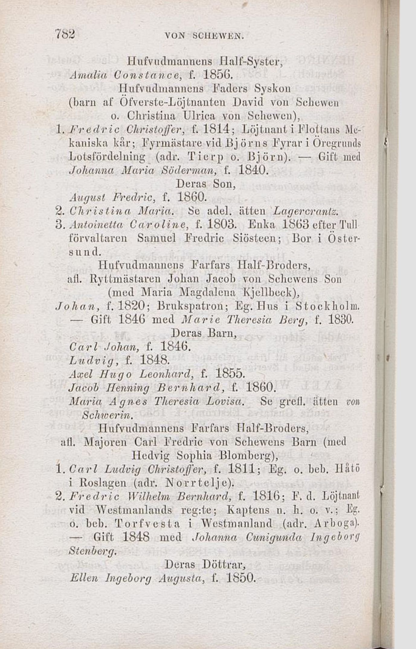 2. Fredric Wilhelm Bernhard, f. 1816; F. d. Löjtnant
