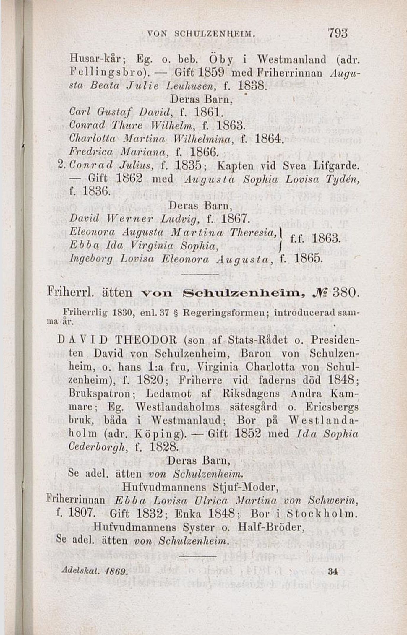 Friherrl. ätten von Schulzenheim, JYs 380.