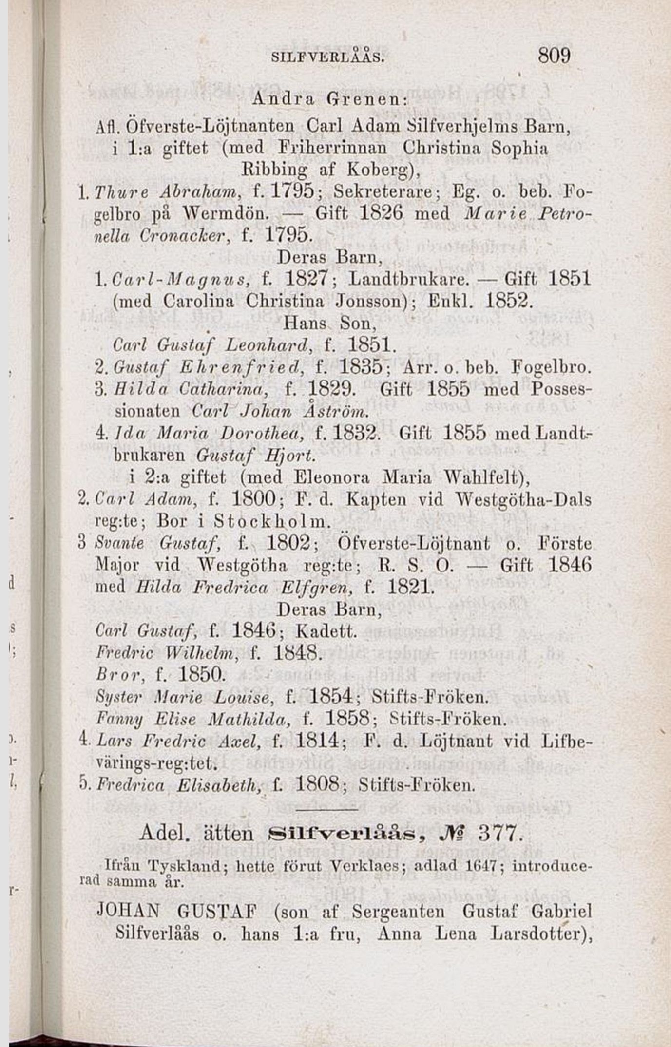 Adel. ätten ©ilfverlåås, M 377.