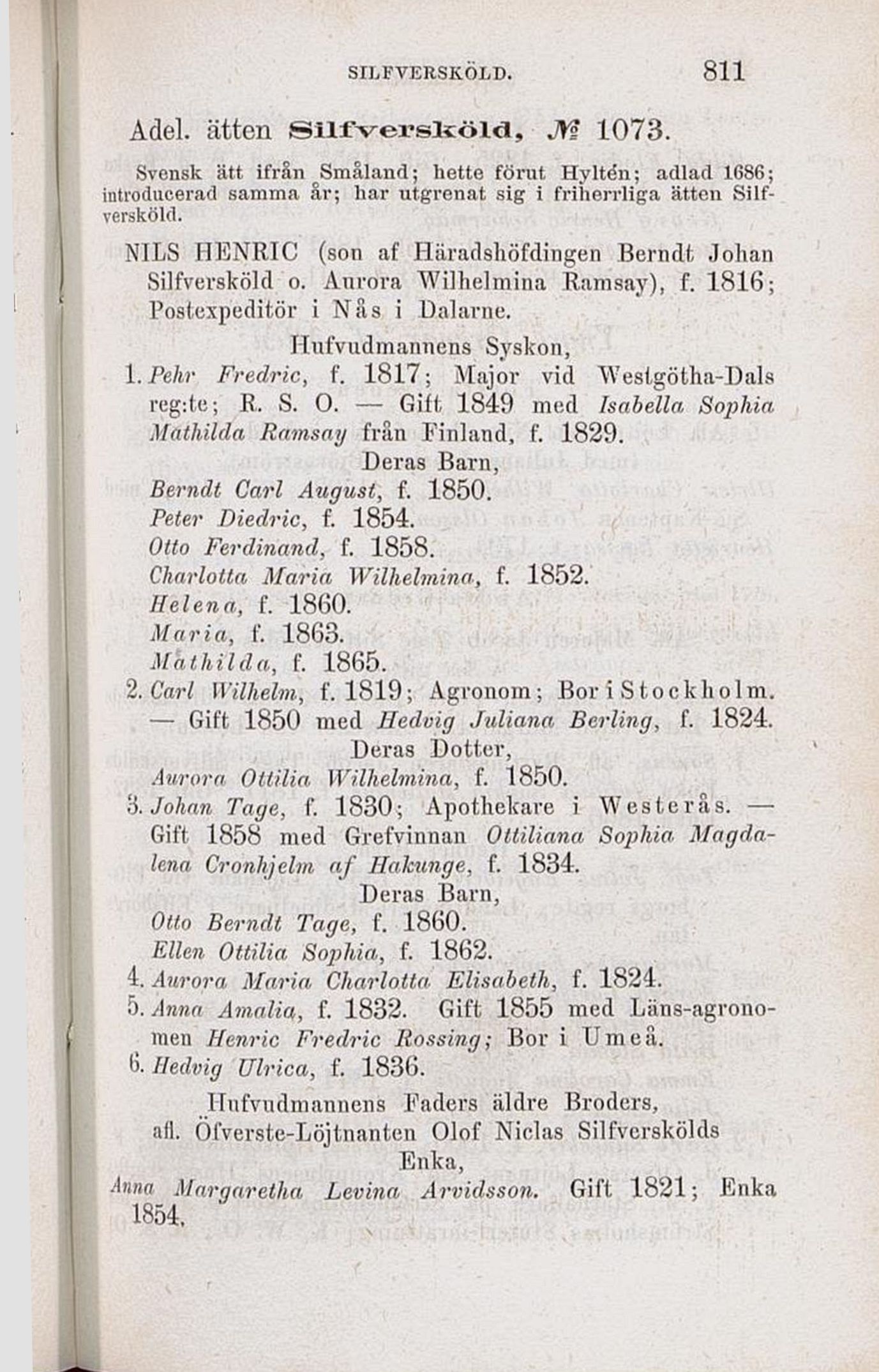 Silfversköld o. Aurora Wilhelmina Ramsay), f. 1816;