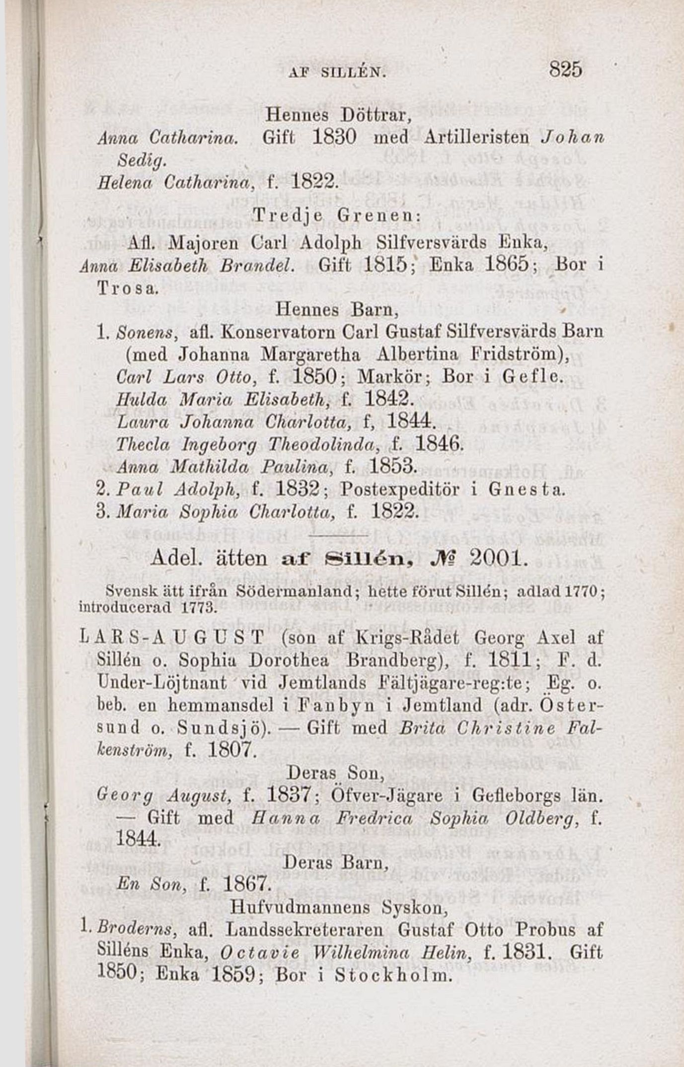 Svensk ätt ifrån Södermanland; hette förut Sillén; adlad 1770;