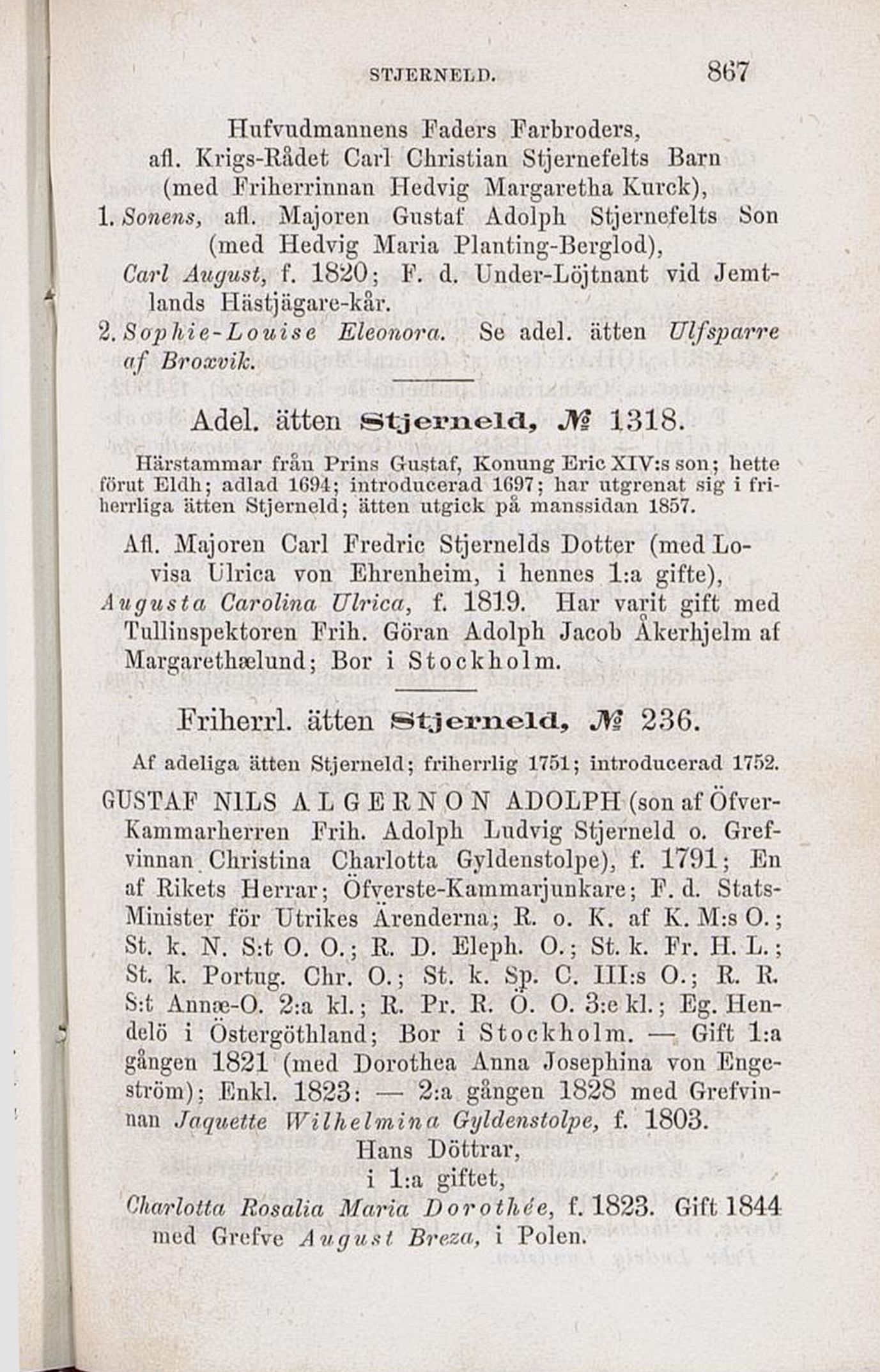 Öfver-Kammarherren Frih. Adolph Ludvig Stjerneld o.